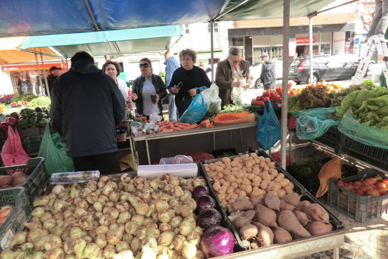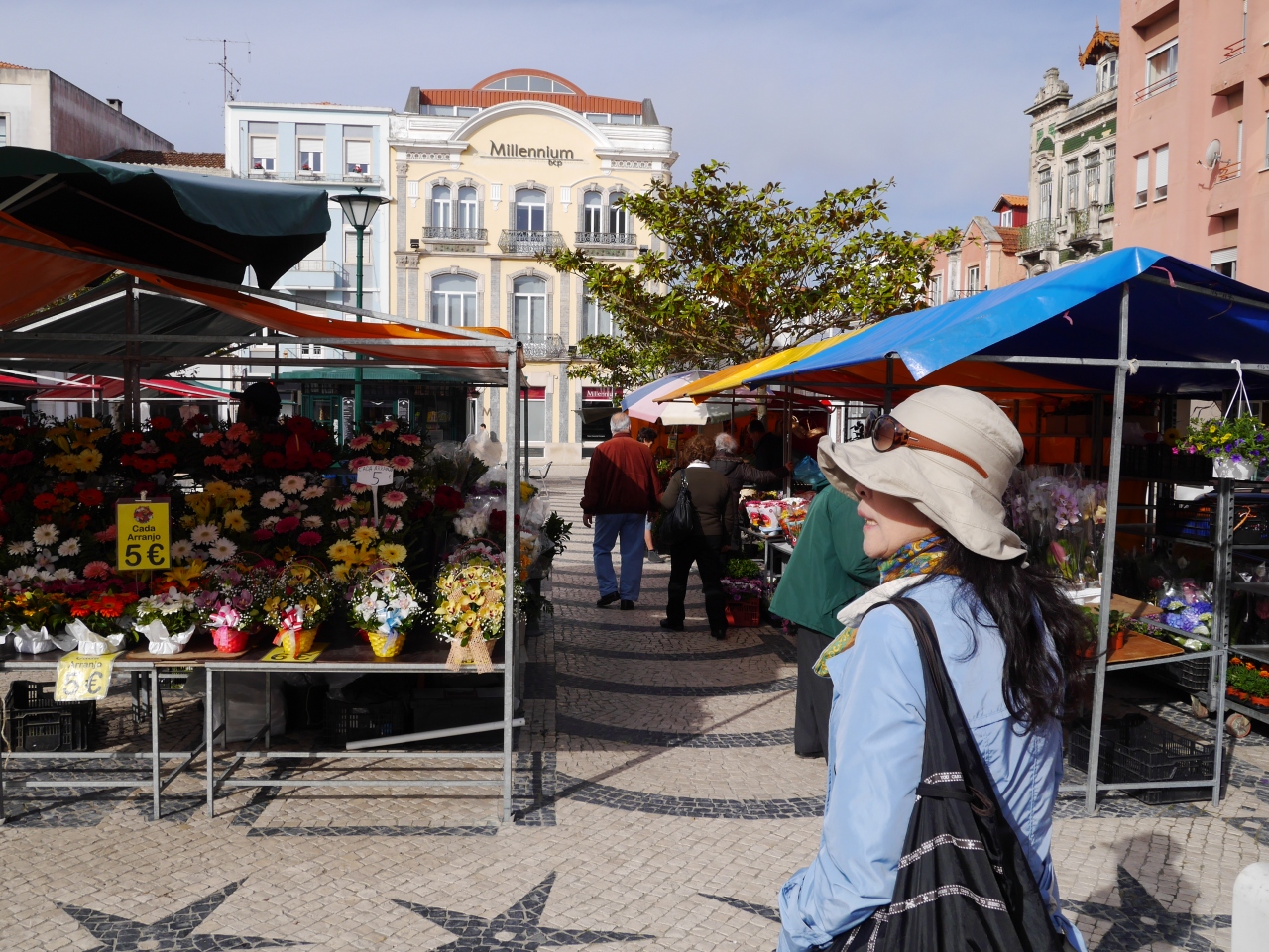 オビドスへ行く途中で立ち寄ったカルダス・ダ・ライーニャの街で、偶然出くわした朝市。バスの出発時間まで、お店をひやかしたり、広場の片隅にあったカフェでコーヒーを飲みながら、ゆったりとしていました。なんとなく、香辛料や枇杷などを購入していました。