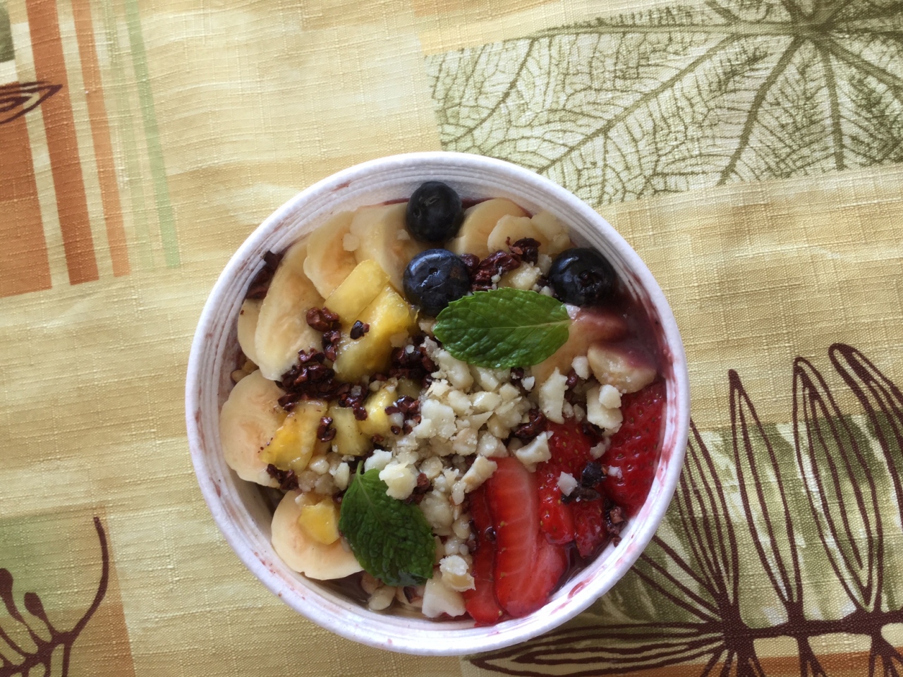 アサイーボウルにはフルーツのトッピングがたくさん入っています。