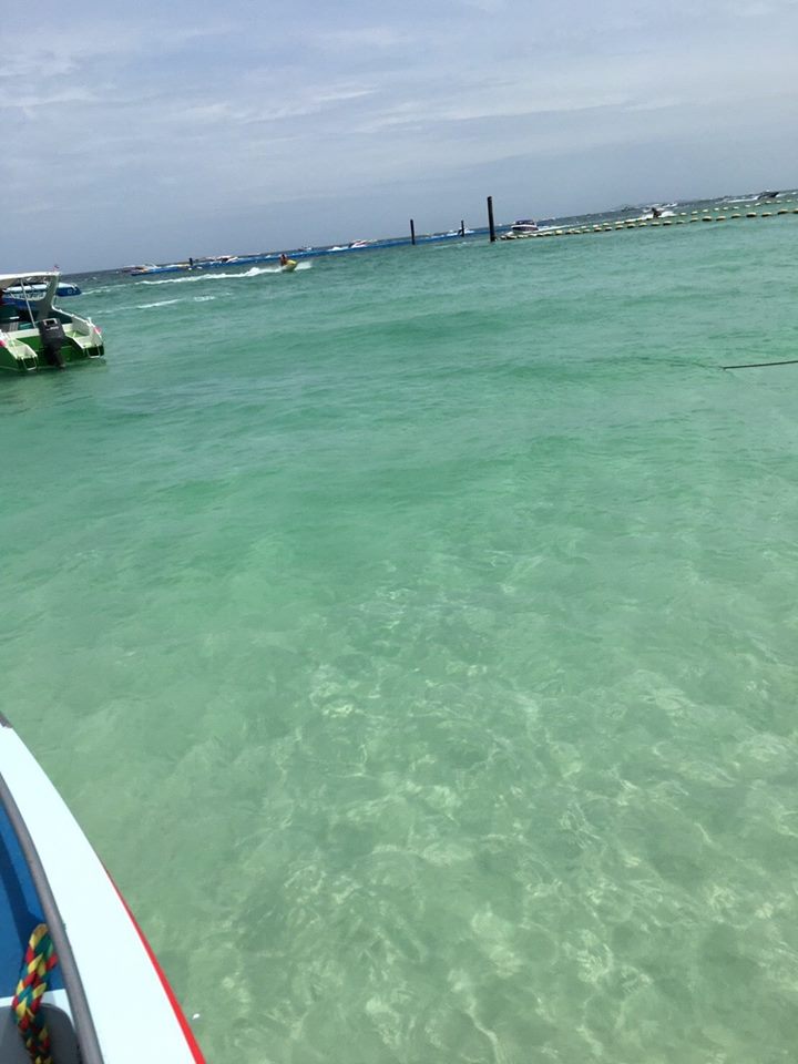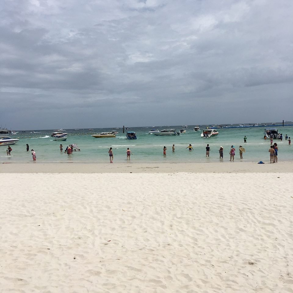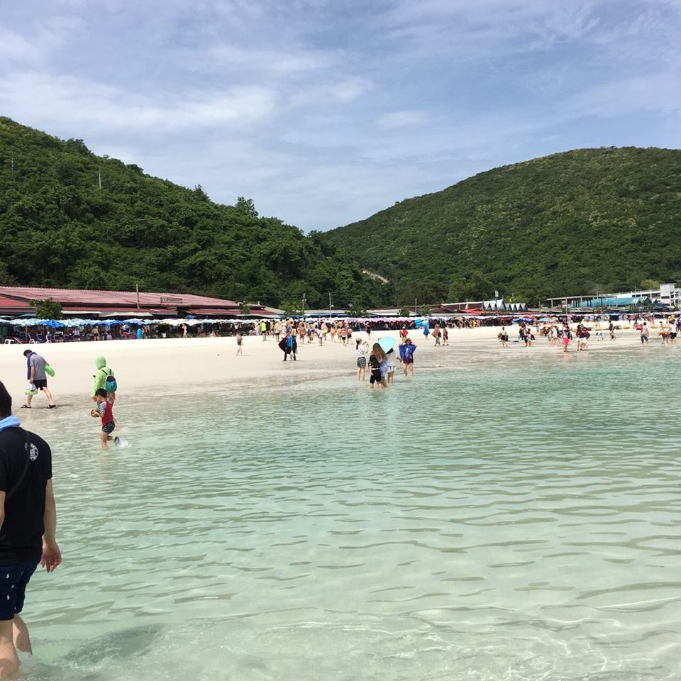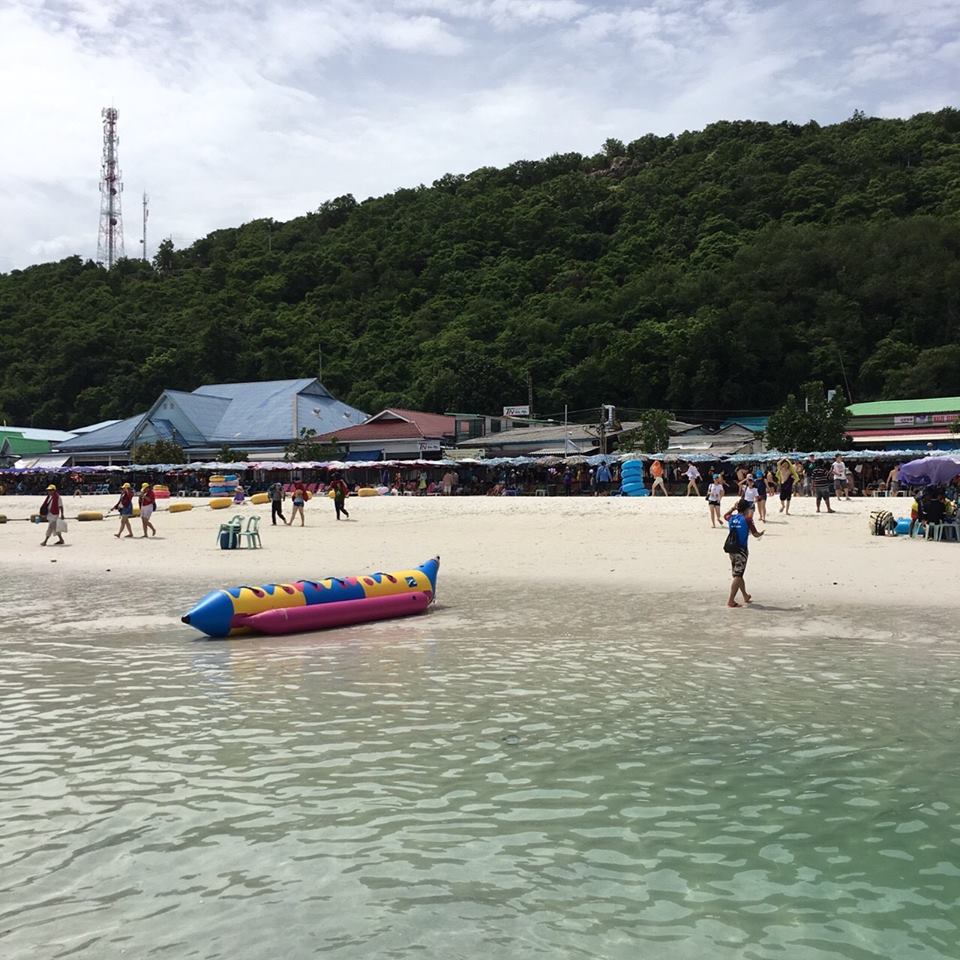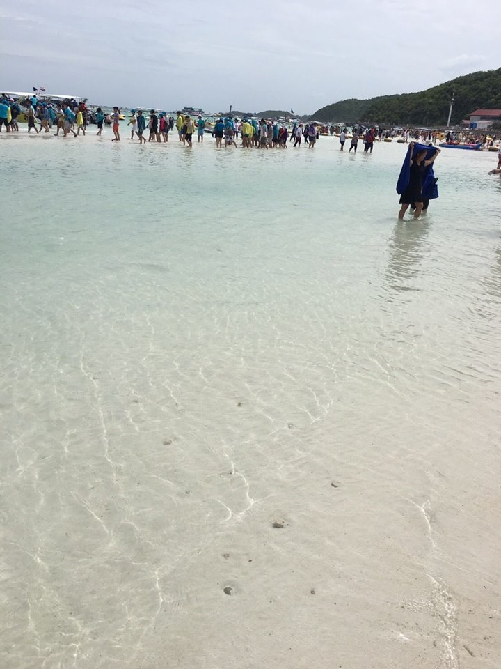 雨期のせいで波が高い。パタヤビーチから沖へ11kmだが、途中、凄くうねっていて、ビーチに到着する頃には9人中7人が乗り物酔い状態。(同行のタイ人ガイドまで。。。)