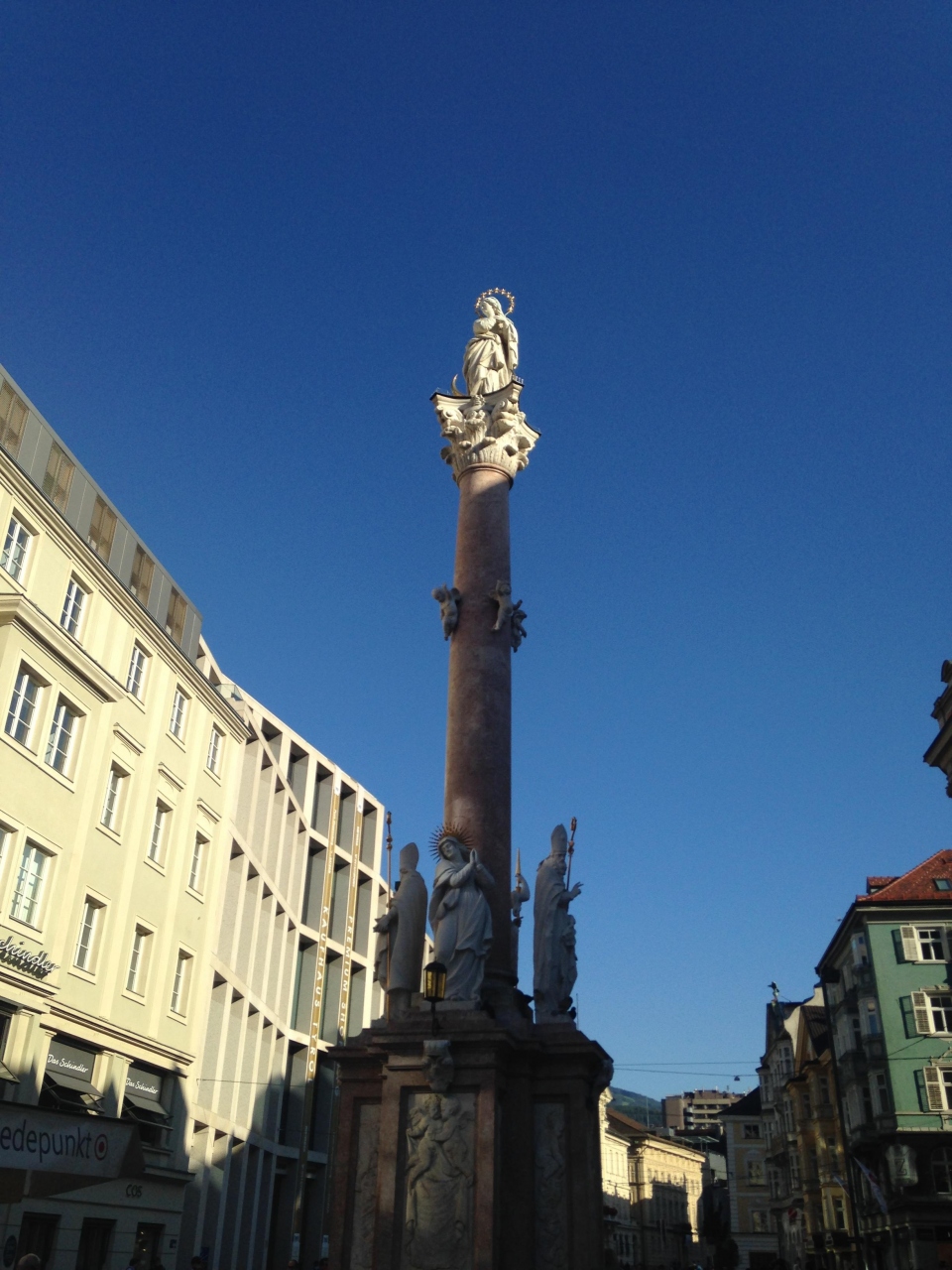 旧市街からマリア・テレジア通りをまっすぐ歩くと広場に一際目立つ記念柱です。周りが一段高くなっているので、腰掛けている方々が多かったのですが、観光名所であったる為か声かけをしてくる集団もいたので注意は必要です