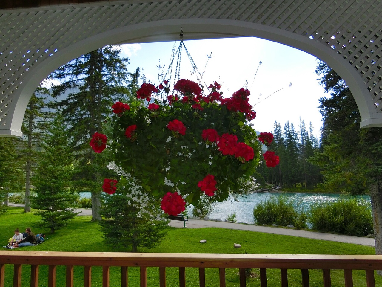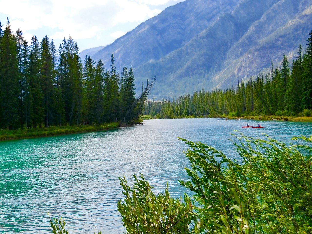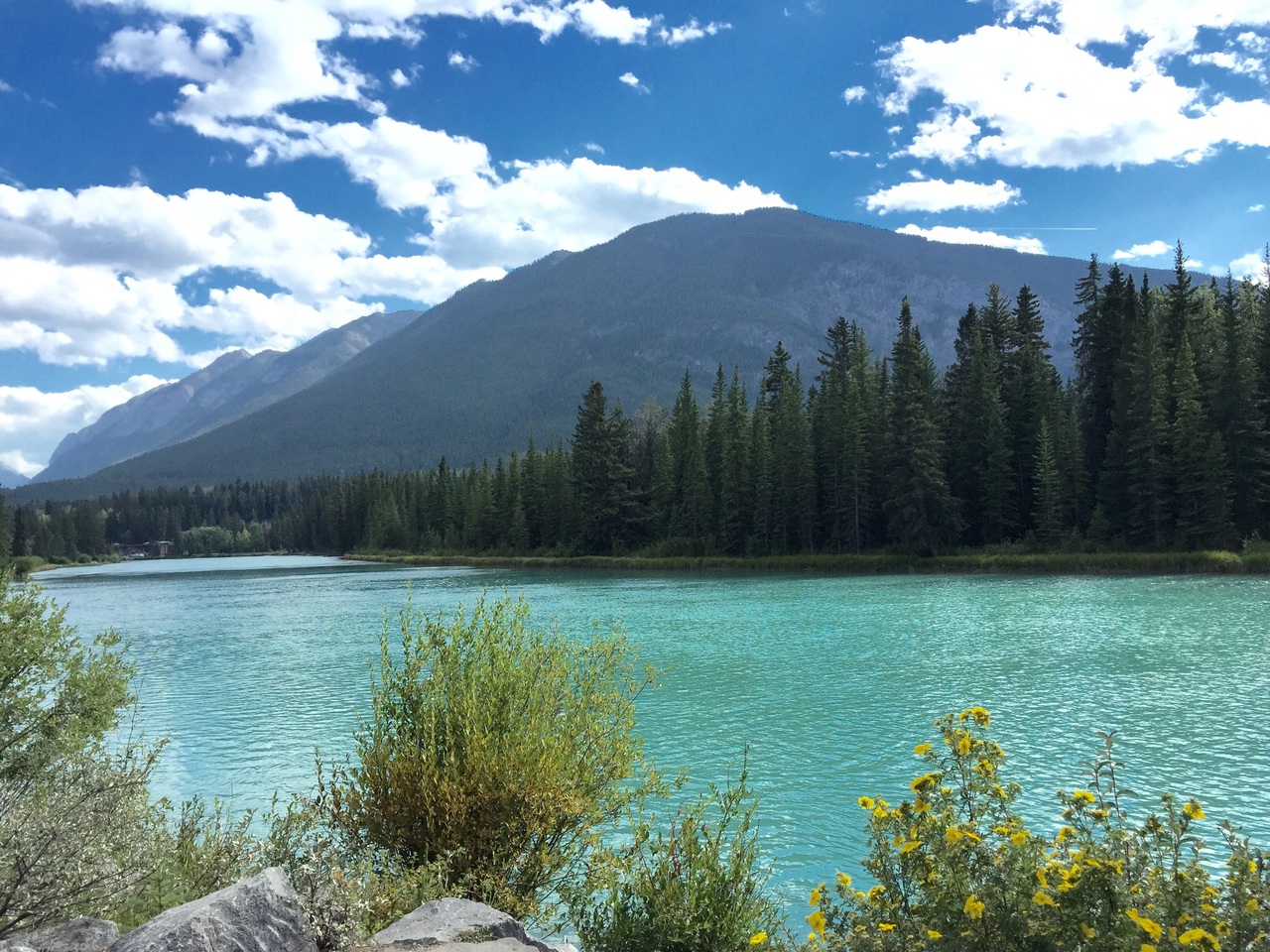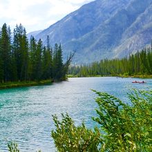 エメラルドグリーンのボウ川では、カヌー・釣り・ランニングなど、皆さん思い思いに過ごしていました。