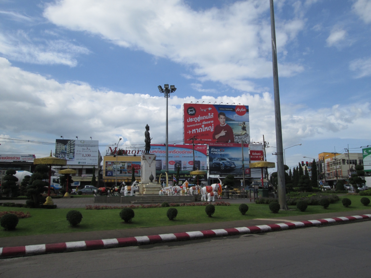 チェンライ国際空港から市内に来るときにメンラーイ王像とその広場を見かけました。約二年ぶりにチェンライを訪れましたが、最初に見る観光ポイントでした。市内中心部の入口にあり、チェンライに来たことを実感するポイントです。