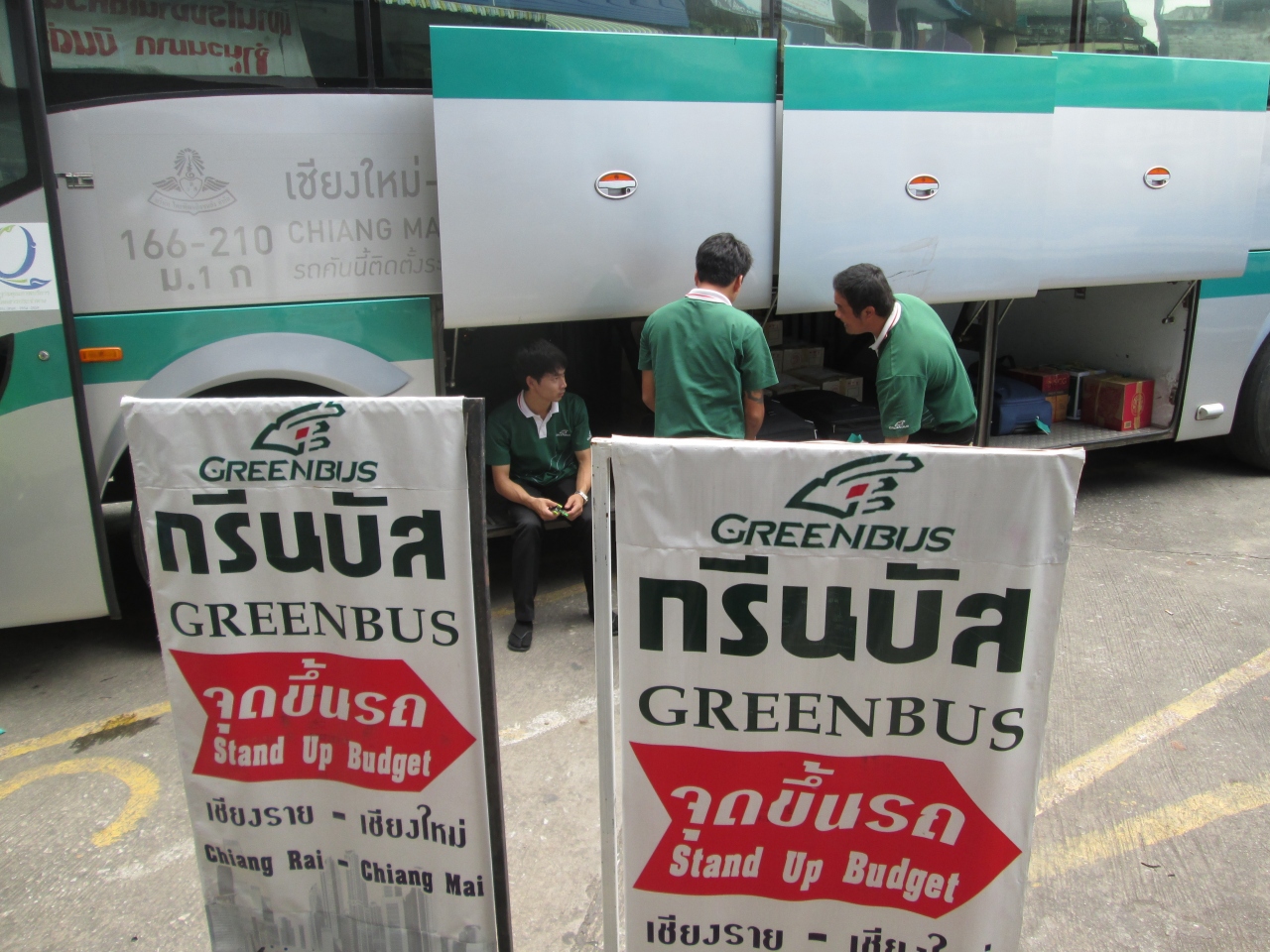 タイ北部を拠点に中長距離バスを運行しています。チェンマイ−チェンライ間はVIPバスが運行しており、右2席 左1席のゆったりとした座席配置で、運転席と客室は壁で仕切られていました。所要時間はかかりますが、チェンマイからバンコク便も運行していました。