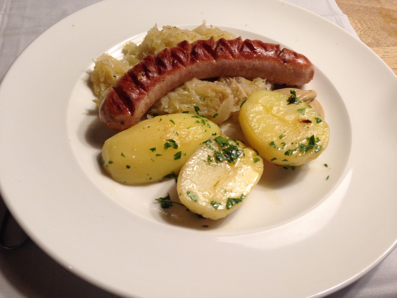 ここのレストランのホテルに泊まったので、夕食はせっかくなのでレストランでためました。レストランは2Fです。室内のレストランの他に中庭のテラス席もありプライベート感があります。今回はレストランでいただきました。メニューは日本語表記もあります。乳名なのは日本名で【肉じゃが】と表記がありますが、あまりお腹が空いてなかったのでビールとグリルソーセージ(マッシュポテトつき)手造りソーセージはボリュームありビールによく合いおいしかったです