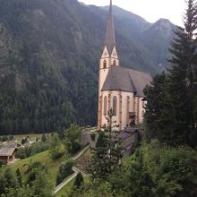 ハイリゲンブルートの街の中心にある教会で小さい街のどこからも見えます。扉が解放されているので、教会内は自由に見学できます。中は薄暗い感じで地下も見学できます。墓地もきれいに整備されており花も多くとてもきれいです