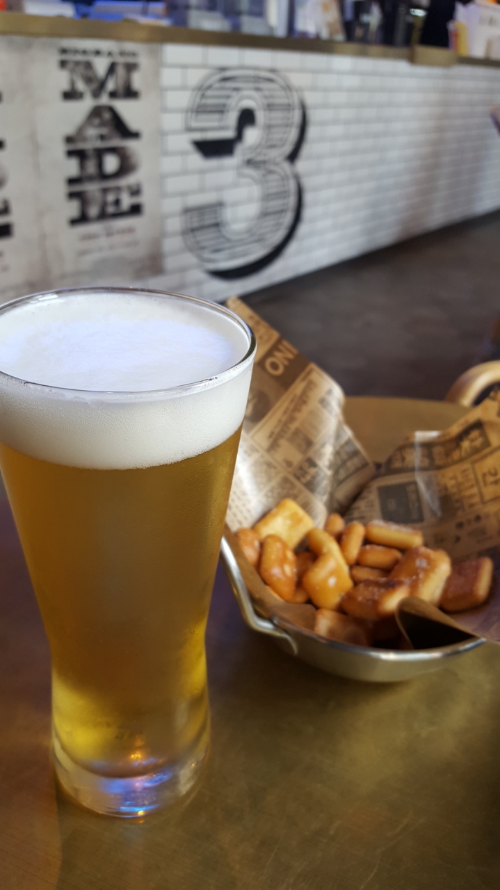 食事はしてませんが、7時間くらい一人で歩きまわっていたのでビールをたのみました。おつまみ付きで8000w。
