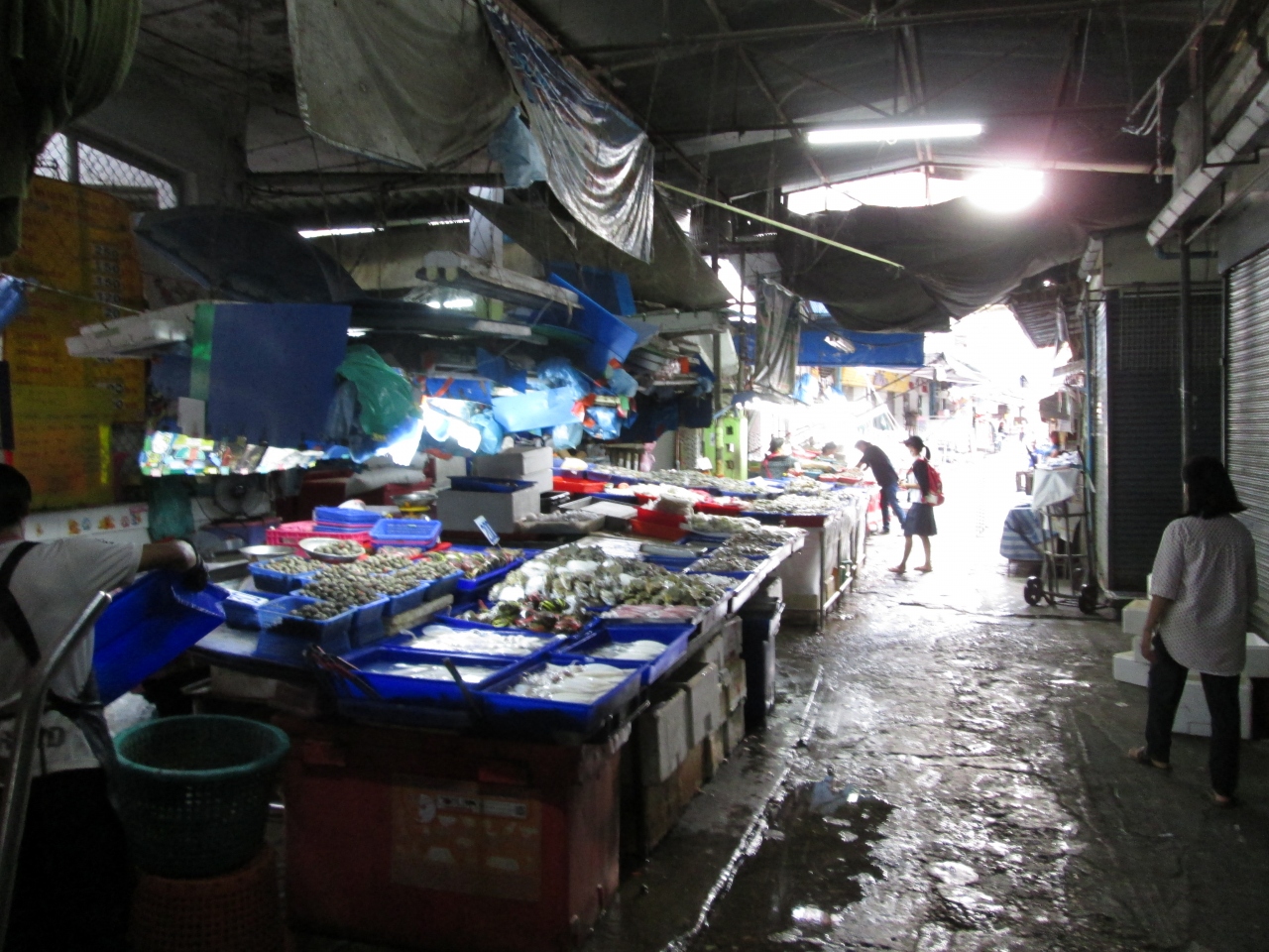 約二年ぶりに訪れたこの常設市場は、変わらず通常営業をしていました。どちらかといえば、お店おほとんどは朝から昼にかけての営業で、生鮮食料品やフードコートはすでに閉店していましたが、鮮魚のお店はおいしそうな魚がきれいに飾られており夕方まで営業していました。