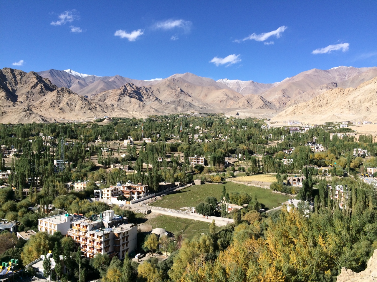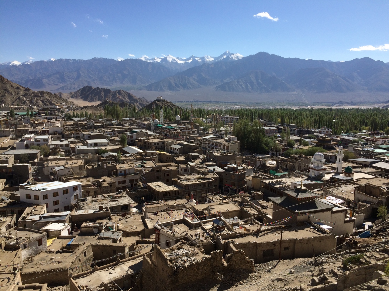 レーの町を見張る高台にあり、威圧的とも形容されるような出で立ちで町のシンボルにもなっている王宮跡ですが、個人的な感想を述べると、王宮内はがらんどうであり、町から見上げる姿の方がかっこよかったです。ただ、ツェモゴンパと同じく、そこからの眺望はとても素晴らしく、町はもとより空港やシャンティストゥーパ、奥の方のヒマラヤの山々を観ることもでき、高地ゆえに息を切らせながらではあるものの、登る価値はあると思いました。