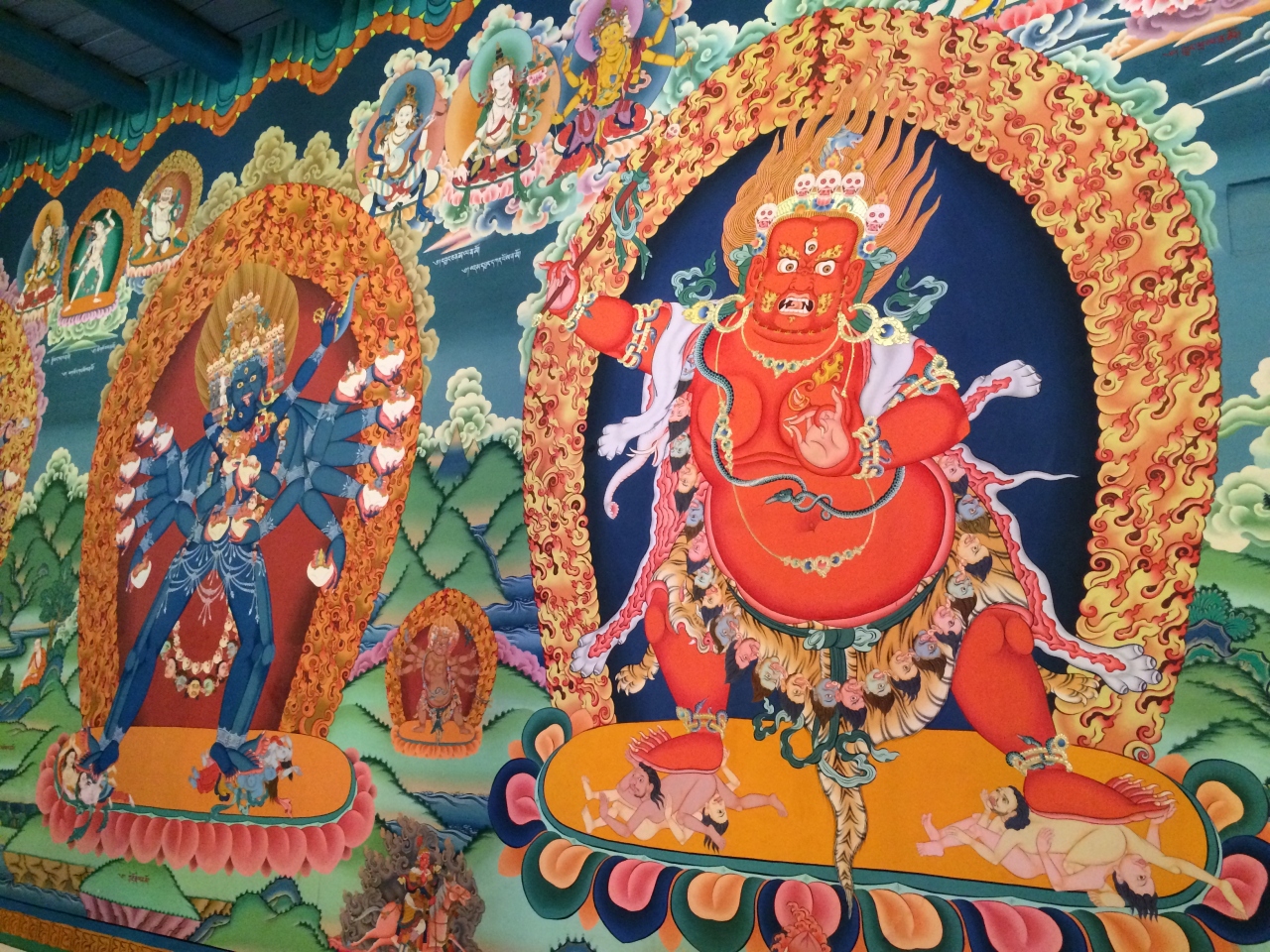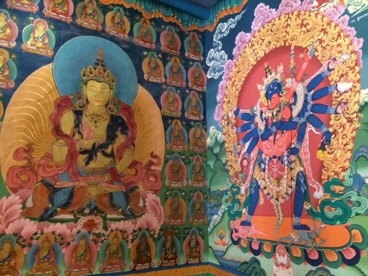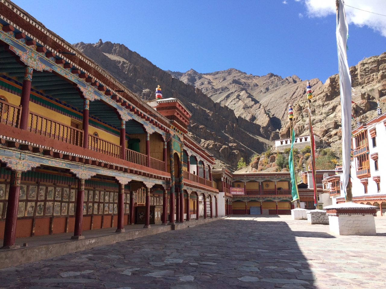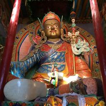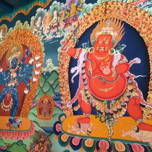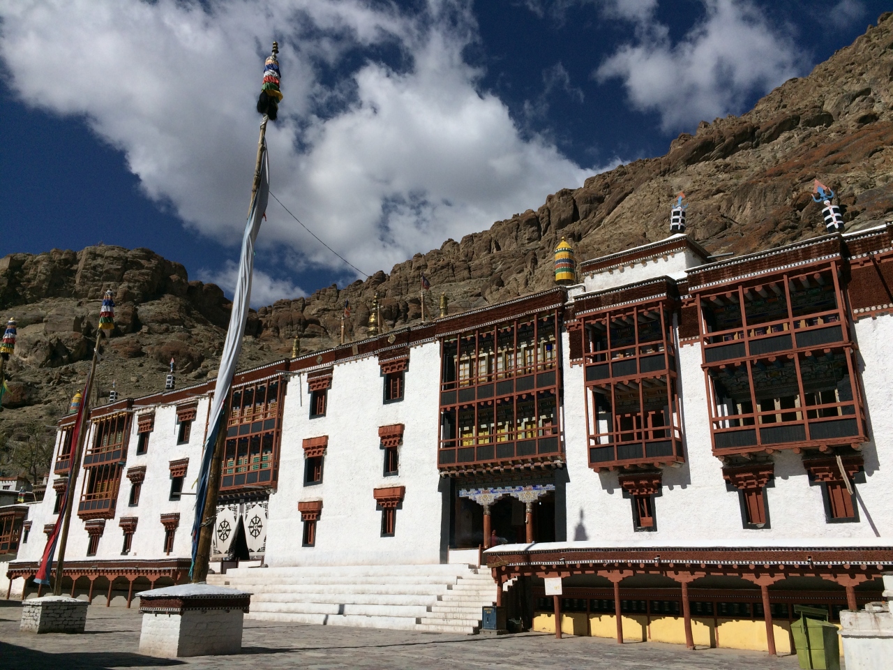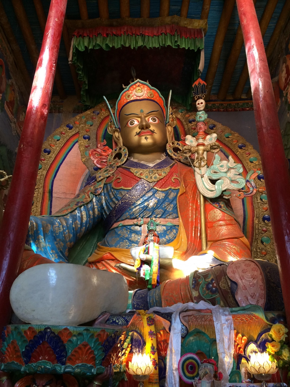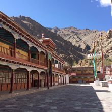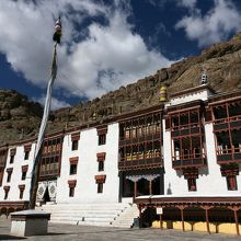 レー・マナリ・ハイウェイを南進し、チェムレーゴンパとは反対に左折し、インダス川を渡り、道なりに子山を登っていったところにある、ラダック地方で最大の僧院です。ガイドブックには仮面舞踏で有名とありますが、踊りの時期ではなくても僧院内に威厳をもって鎮座しているグル・リンポチェ像は見ものであり、そのほかにも大きく華麗に描かれた曼荼羅や仏画にも注目しました。