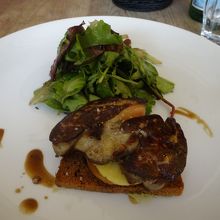 フォアグラのポアレを食べたくて。夏は、クロ−ズしていて、やっとこの店を見つけた。他の人は、ムニュのランチを食べていたが、フォアグラポアレと言ったら通じた。ただ、飲み物をキャラフドロ-と言っても通じずペリエけいの炭酸水を持ってきた。後で、グラスワインを頼むと機嫌よく持ってきた。帰りに隣の食材店に寄った。こちらには、テリ−ヌとかテイクアウトできて、パンにはさんでサンドイッチにして購入している人もいた。英語よりフランス語のほうが通じる感じだった。