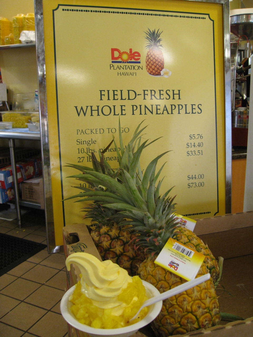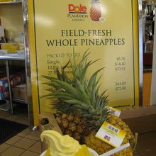 ドールと言えばスーパーに並ぶバナナやパイナップル、缶詰やジュースなどがすぐに思い浮かぶ人も多いと思いますが、ここではドールの直営店としてハワイ産の高品質のパイナップルをいただくことができました。格安というわけではありませんが、お土産も多く取り扱ってあり、十分楽しめました。