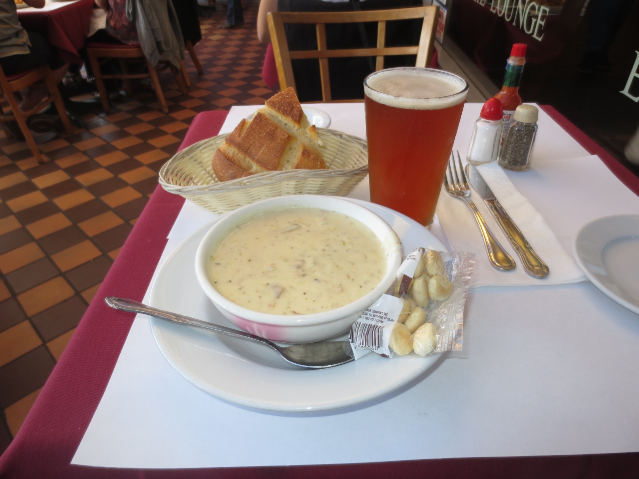 フィッシャーマンズ・ワーフのシーフード・レストランが集まる一角にありました。グロット(洞穴)という名ですが普通の路面店のようでした。ちょうどテラス席が開いたので、昼食をここで摂りました。立ち食いの店など周囲には、もっと混み合った店がありましたので、それらの方がコストパフォーマンスか味が優れているのでは?とも思いましたが、入り易かったので、ここにしました。