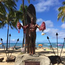 ワイキキビーチにあるので、ワイキキに泊まっている方なら、何度も目にする銅像です。