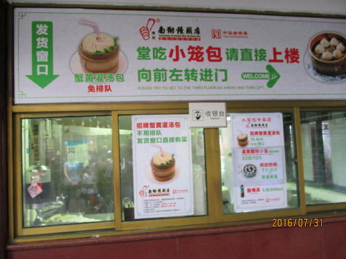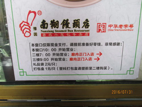 お寺さんは朝が早いので豫園も早朝から観光客が集まっています。豫園で有名なのは南翔小龍包です。何時見ても長い行列で1時間程並んでいます。この時間は並んでいません。営業時間の看板がありました。