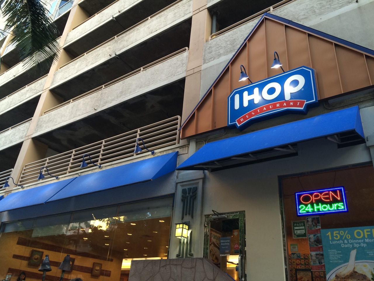 ハワイのワイキキにあるアイホップ。オハナワイキキマリアホテルの1階にあります。Tギャラリアの近くにあるので、とても分かりやすい場所にありました。