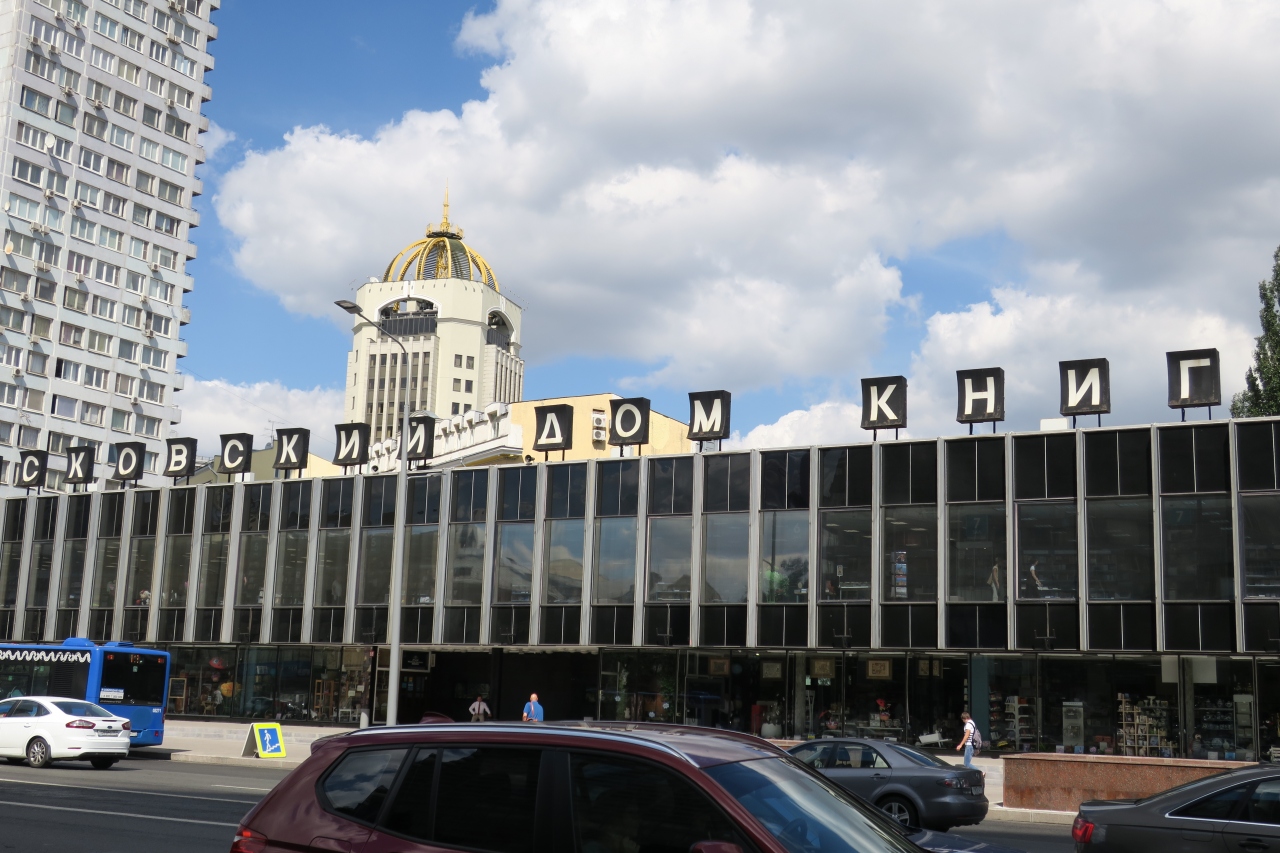モスクワの繁華街であるアルバート通りの隣にある「ノヴィ・アルバート通り」最東端にある大きな書店です。高いビルではありませんがすぐにわかります。