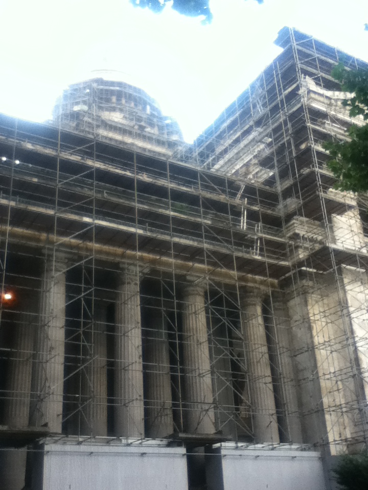 ブリュッセル中央駅の南西にある。大きな建物で重厚な雰囲気が漂う。正面付近は修復工事のため足場が組まれて見にくいが、南側は足場がなく見事な装飾が良く見えた。東側にはブラール広場があり、そこからは北西側の綺麗な景色が見渡せる。駅から少し遠いが、訪問するのもいいかもしれない。