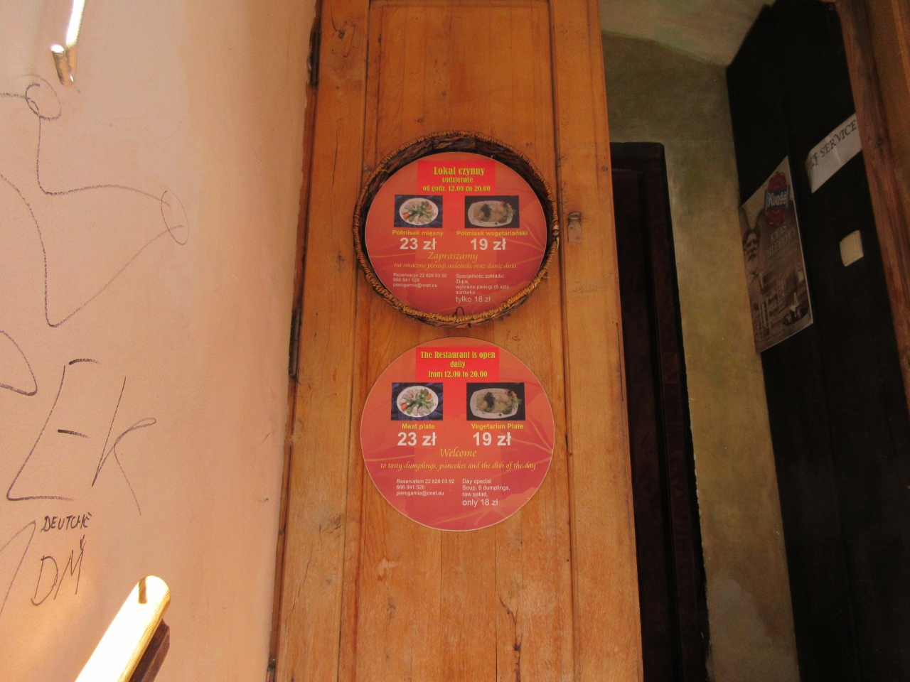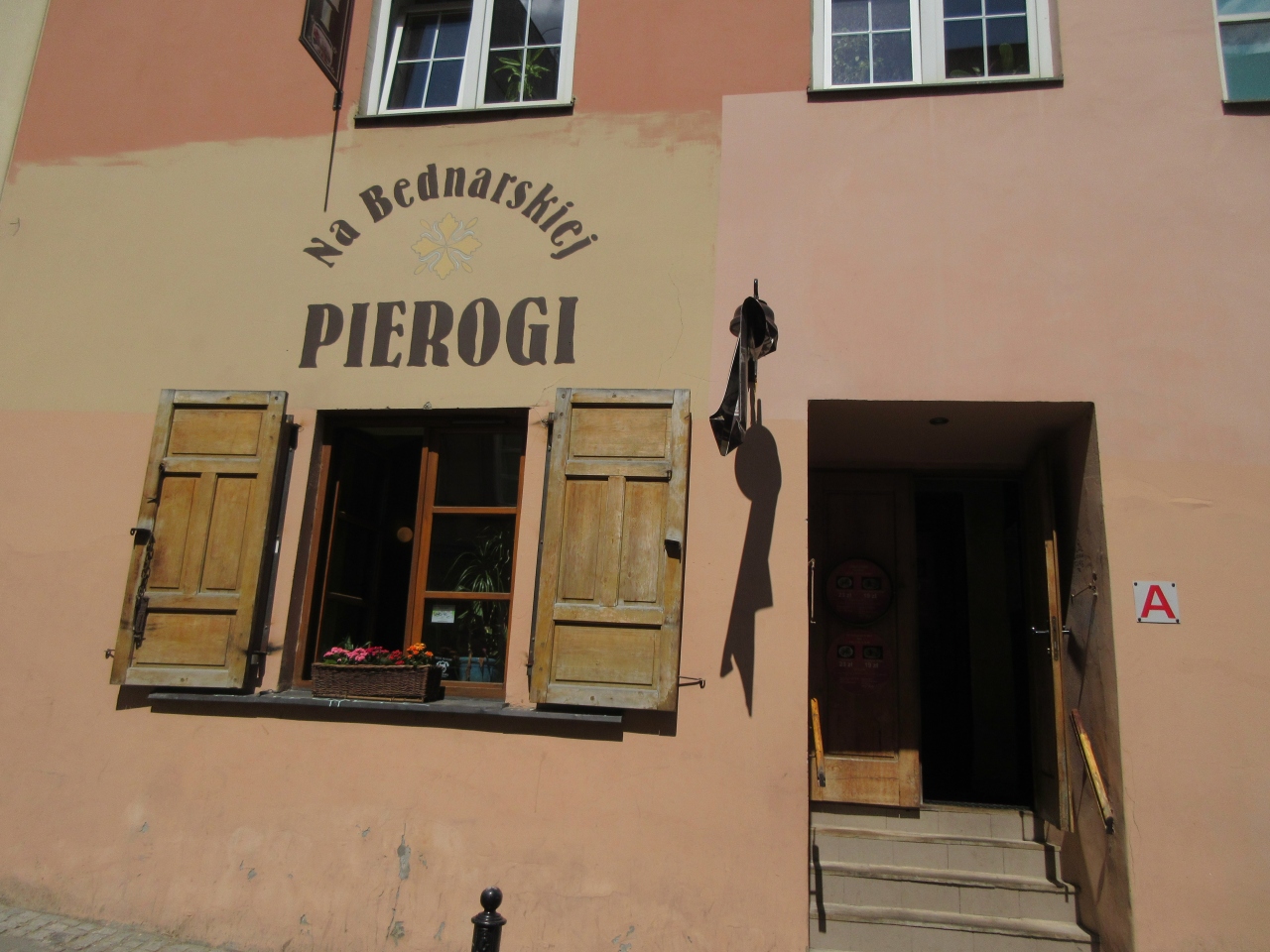 ガイドブックにも載っているポーランドの地元料理ピエロギの専門店です。旧市街に向け北上し、大統領官邸を過ぎた細道を右手に折れると坂の途中にあります。ピエロギは、中身によって10種類以上あって選ぶのに迷うほどです。値段も6個で千円ほどとリーズナブルです。