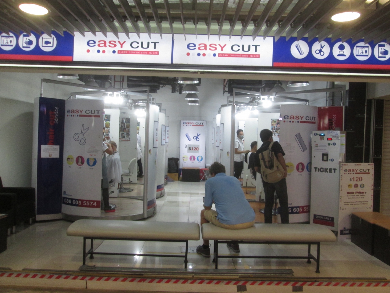4月のバンコクは燃えるように暑かったので、到着してすぐにMRTスクンビット駅の構内にあるヘアカット屋に行きました。100バーツから120バーツに値上がりしたようですが、安い値段で髪を切ることができます。