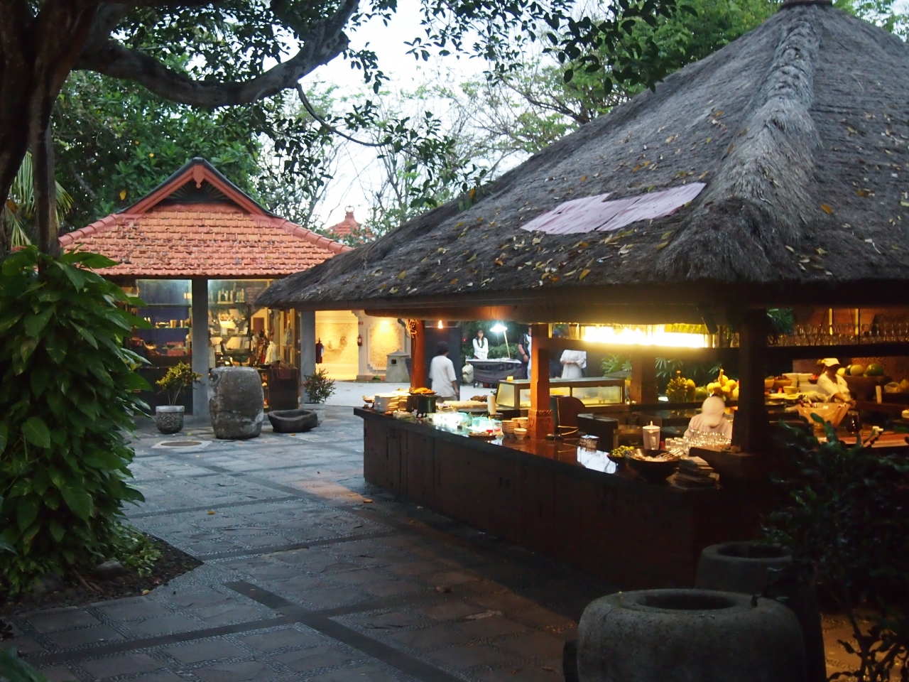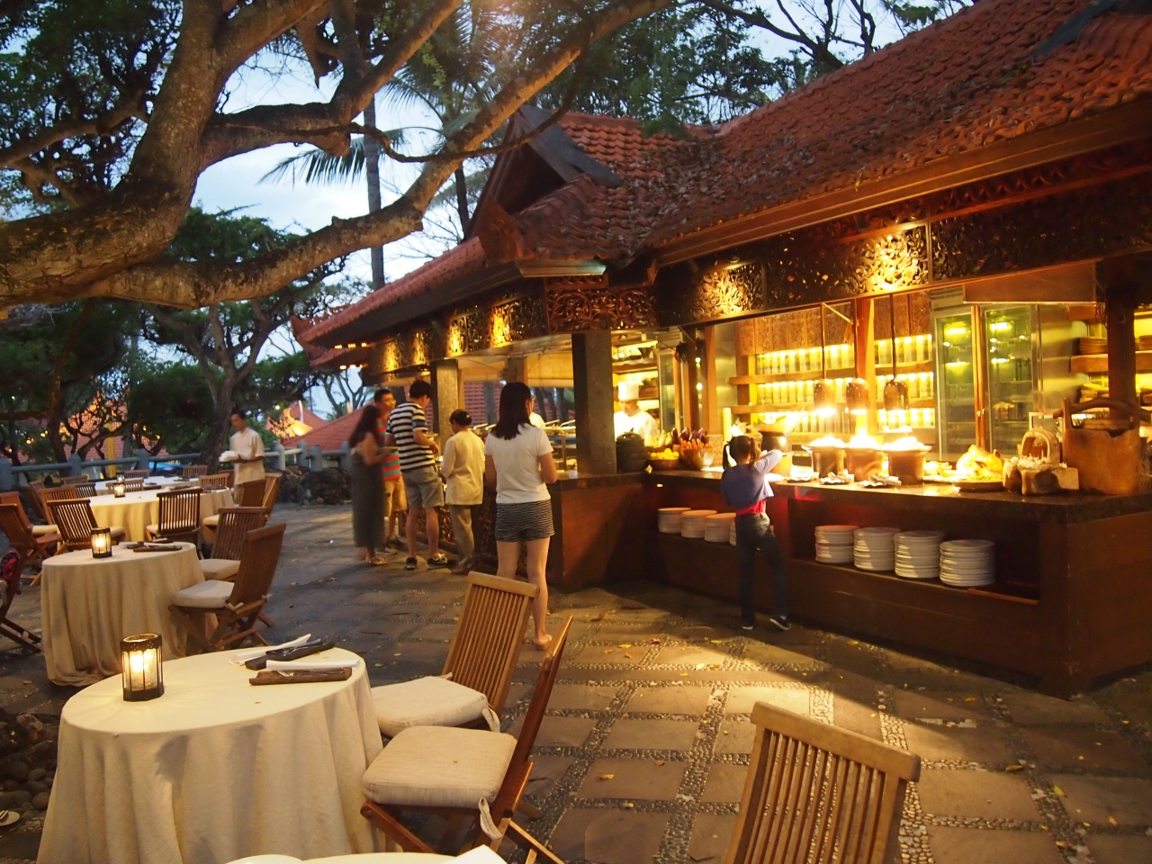 グランド・ハイアット・バリにあるインドネシアレストラン。すり鉢状に一番低い場所のステージを囲んでテーブルが配置され、お肉や海鮮物等の焼き棟、スープやご飯ものの棟、デザートの棟の3つの建物からのバイキングレストラン。
