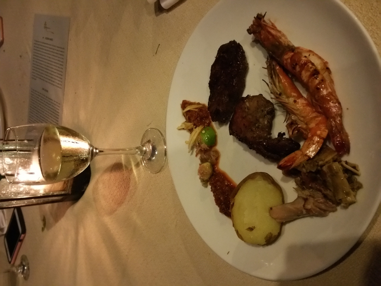 屋外の爽やかな空気と、おいしそうな焼き物のにおい、舞踊も付いて、旅行の思い出には良かったと思う。5人で、ビールとワイン1本飲んで440万ルピアだった。
