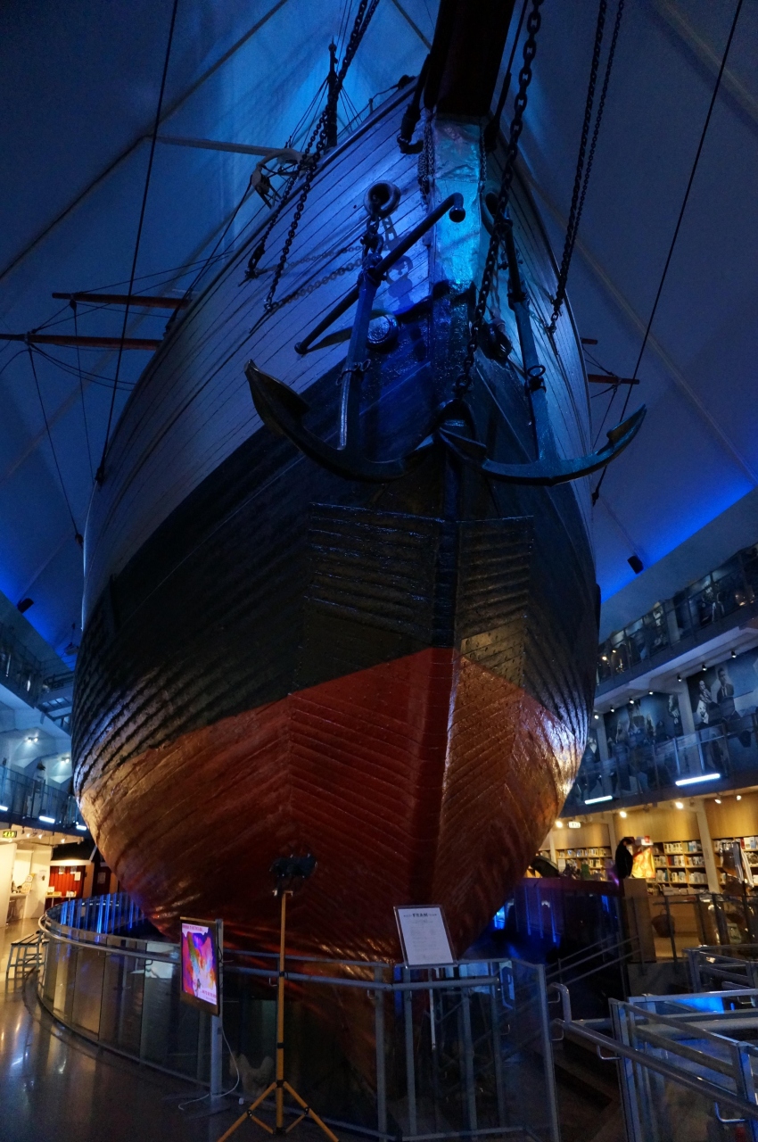 建物が三角形になっているわけが、中に入ると分かりました建物物の中に、フラム号だけがすっぽりと入っていました。南極、北極に行った歴史ある船です。内部の見学ができて、服やテントなどがありました。オスロパスで入館できます。