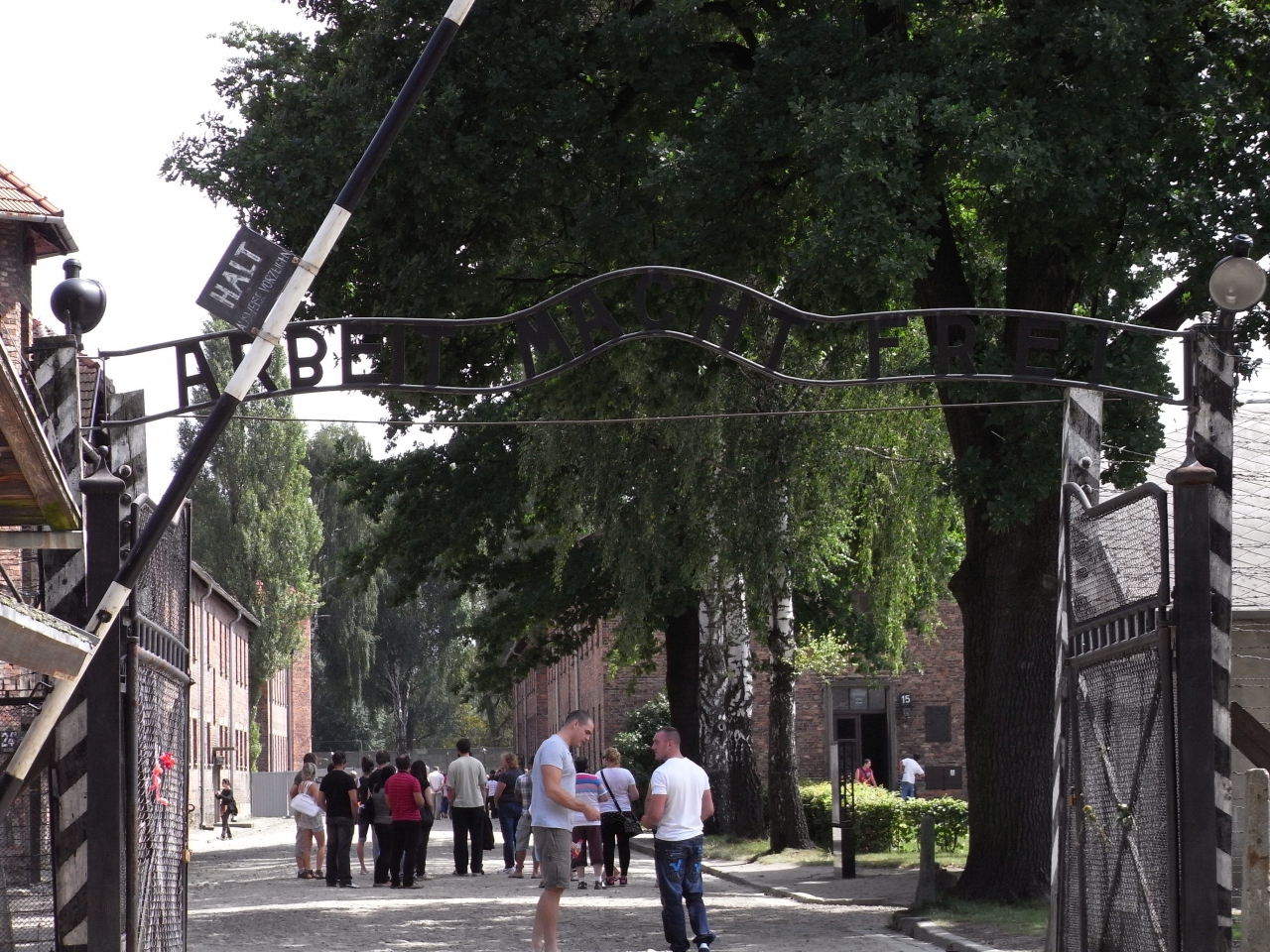 クラクフ本駅から鉄道で2時間、オシフィエンチム駅から歩いて2~30分かかってアウシュヴィッツの観光客用入場ゲートにたどり着きます。9時台に出発して、着いたときには12:50でした。。オシフィエンチム駅には売店や食堂がちょっとあるくらいなので、軽食や飲み物は一応持っていたほうが無難です。バスで来ることもできるようです。
