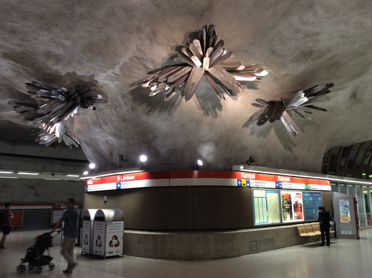 マリメッコ本社に行くために地下鉄を利用しました。1日チケットを購入していたのですいすい行けて便利でした。オレンジ色の車体にオレンジ色の内装です。有名な方のデザインらしいのでフィンランドらしいカラーだなと思いました。