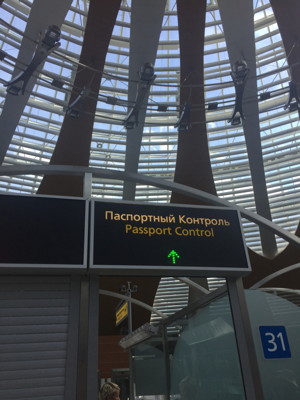 エアロフロートを利用してモスクワに行った時の空港です。空港自体は綺麗で、英語表記もありました。入国審査に30分以上かかりました。前に10人位しかいないのに…。出国審査も20分位かかりました。免税店にはお酒がたくさんあり、市内で購入するより安い様に思います。こっちの空港の免税店にはナチュラシベリカ、スタバはありませんでした。見る所、食べる所が少ない印象を受けました。