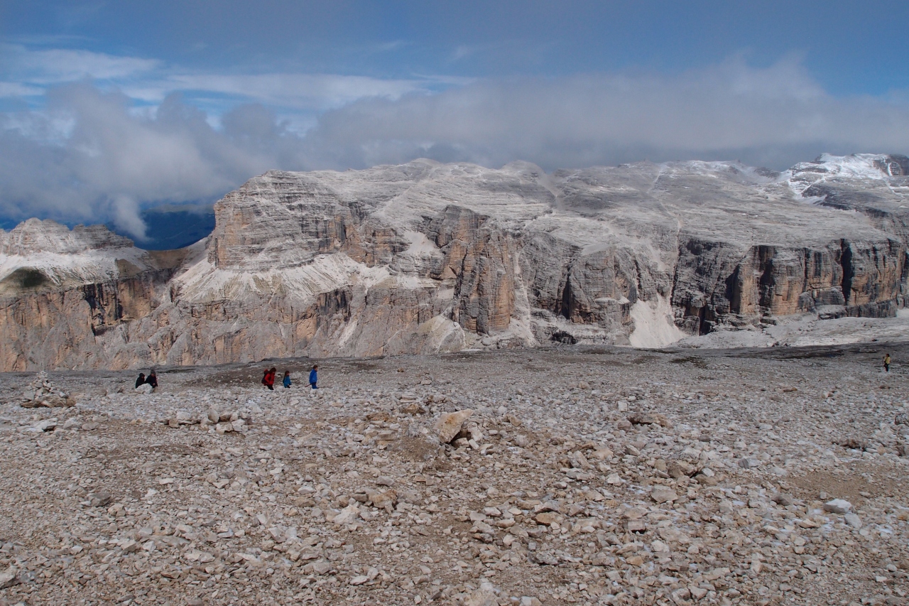 別の惑星に来たような景観が広がっていました。標高3181mのサッソルンゴも目の前に見えます。ただ、足元はあまりよくないので、歩き回る場合はしっかりした靴が望ましいです。山頂で1時間半ほど過ごしました。