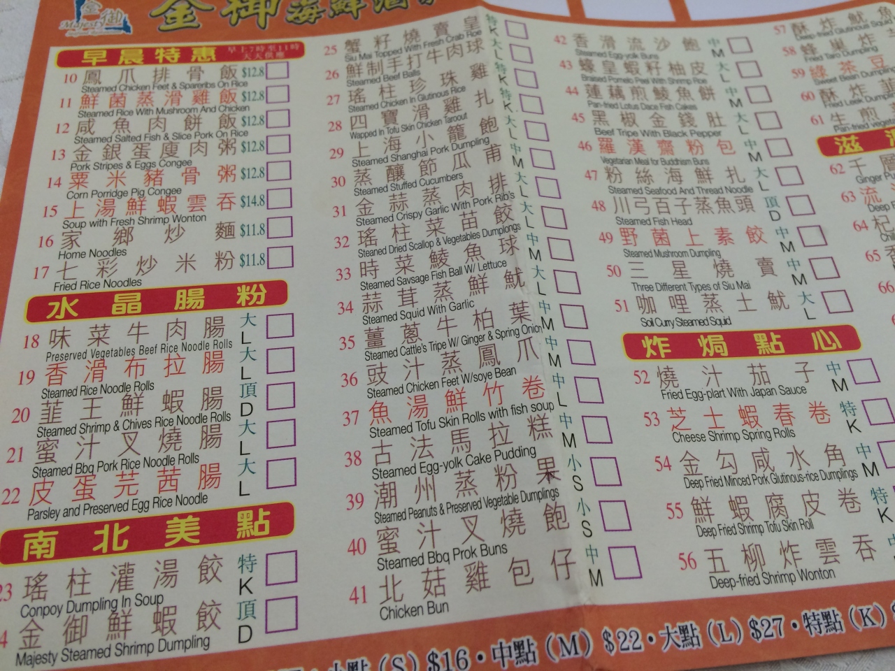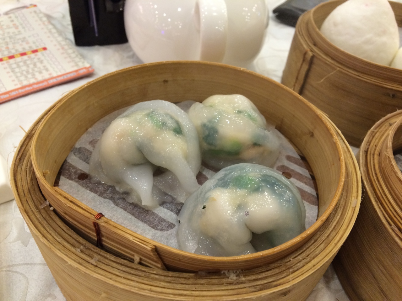 たくさんのお客さんでにぎわっています。メニューは写真があまりなく、広東語と英語なので何が何やらわからないのが難点。でも、食べたいものの写真などを見せればお店の人がわかってくれて注文票に書いてくれます。エビ入り蒸餃子のエビがすっごくぷりっぷりでおいしかったですよ。