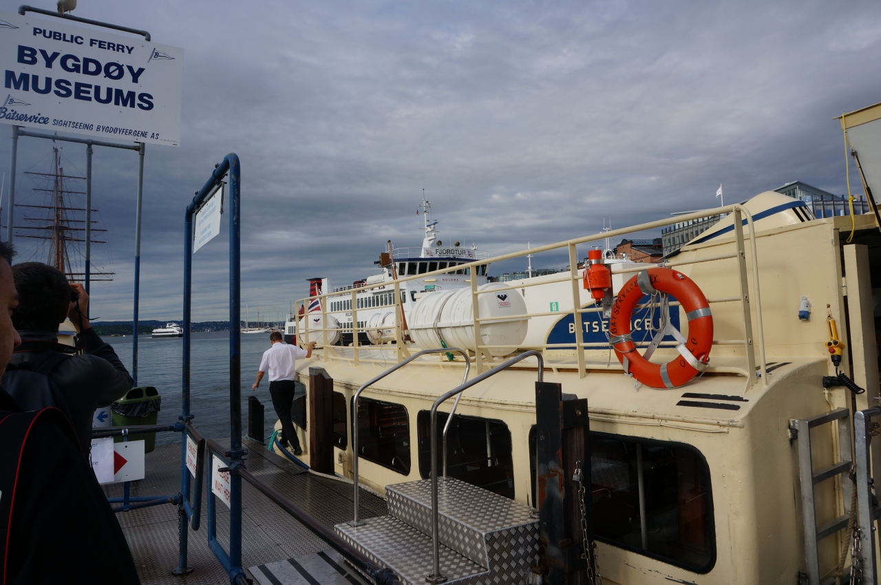 オスロ市庁舎前から船に乗りました。ビグドイ地区に行きます。小さなフェリーです。海の眺めも気持ちよく、15分ほどの小さな旅を満喫しました。アーケシュフーズ城を海から見ることができました。乗り場がたくさんあるので間違えないように。