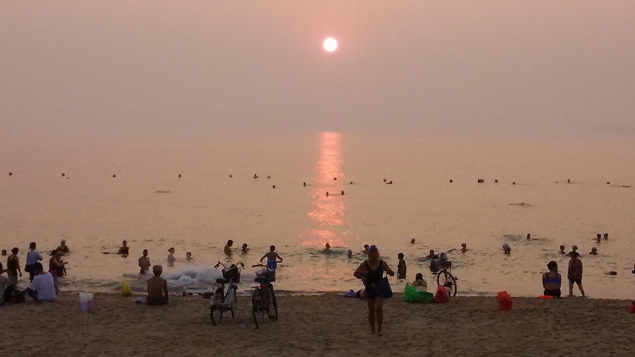 ダナンからスリーピングバスで早朝4時に到着、ビーチで夜明けを待ちました。