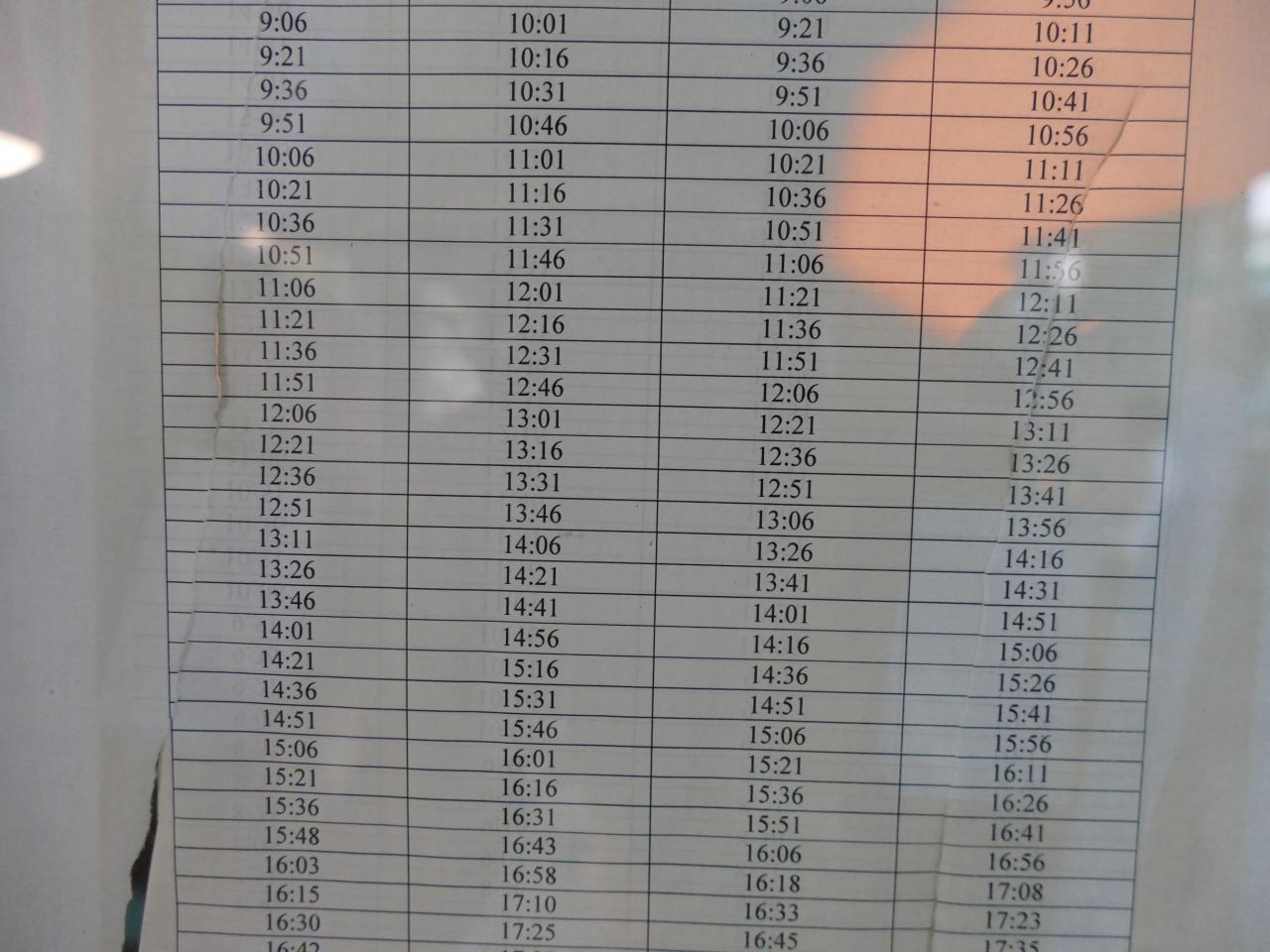 この時刻表は、バスターミナルに貼ってあったもので、一応、日中に係員に聞きましたが英語が通じないので、なんとか「空港行きのバスは?」と伝えて「それだ!」と言われたものです。