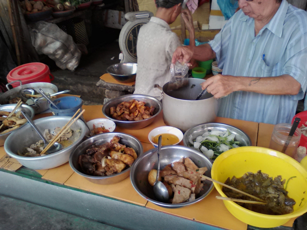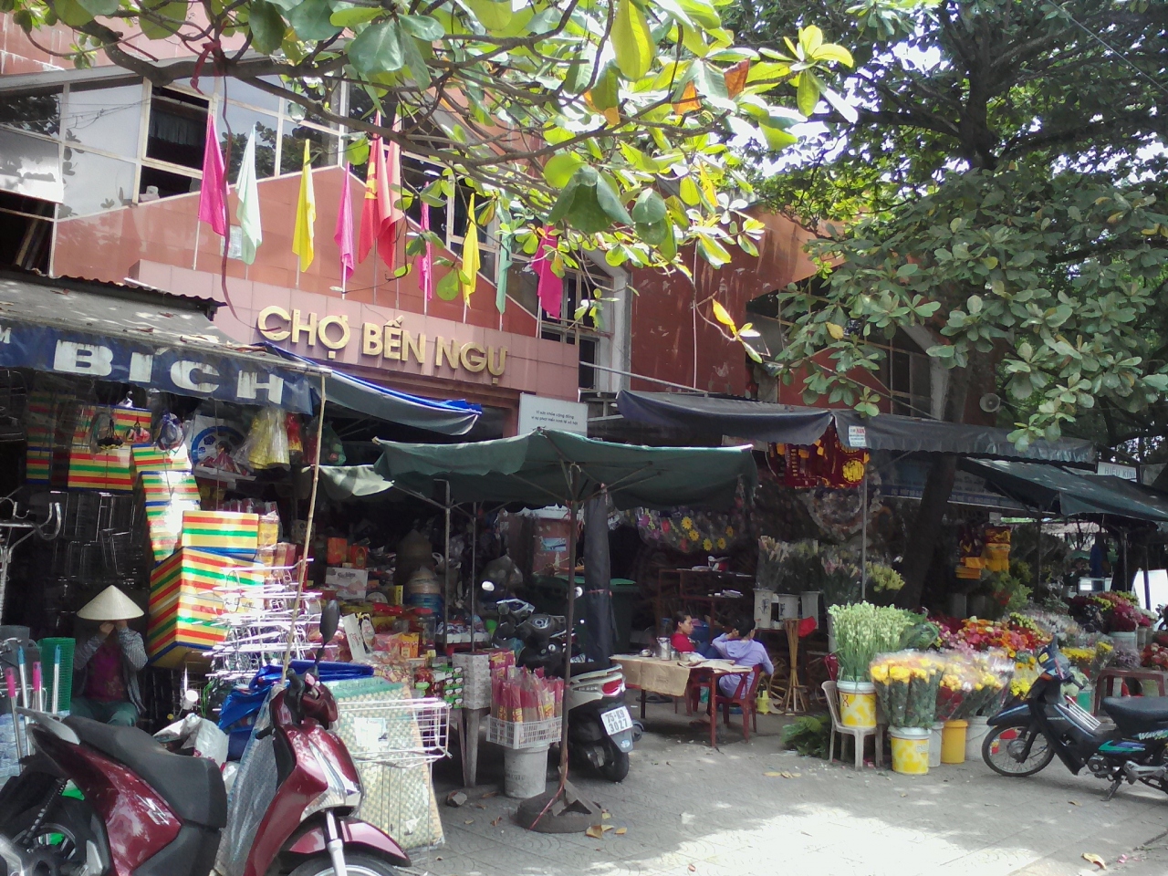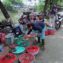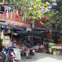 新市街南、アンクー川沿いにある小さな市場。ローカル感が半端ありません。正面入口を入ると布地屋の迷路。奥に進むと肉や野菜の生鮮品売り場があります。南側の川沿いの道路には貝や魚などの露店が並び活気があります。朝行けば人手も多いと思います。市場の北側には飯屋もあり1万5000ドンから食事もできます。小じんまりしている分隅々まで見られるので楽しいです。