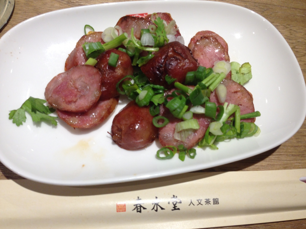 席に戻ってしばらくすると注文したタピオカミルクティーと台湾香腸(ソーセージ)が到着。味は期待を裏切らず美味。ミルクティーも上品な味でした。