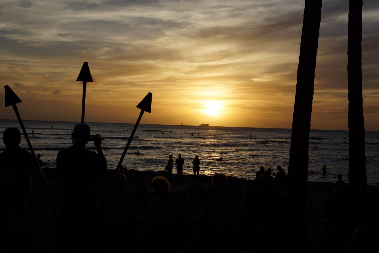 いわゆる「ワイキキビーチ」と呼ばれる辺りと殆ど変わりませんが、多少中心部よりも人が少なめかと。