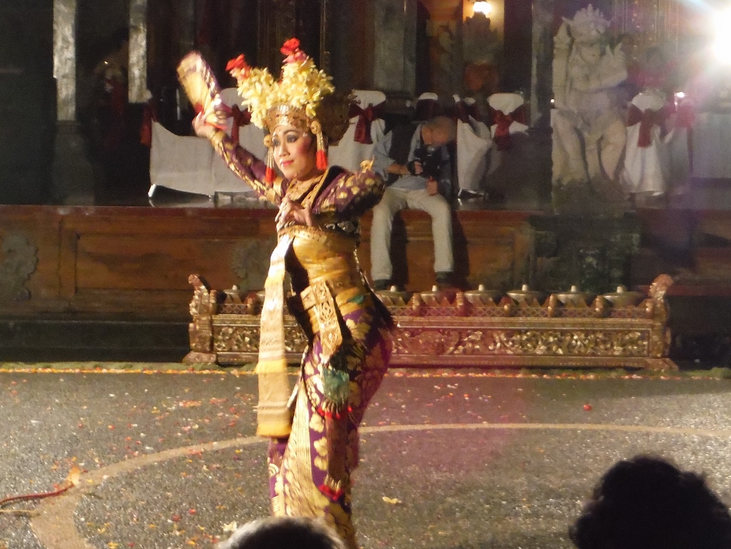 ウブドは3回目で毎回バリ舞踊をみているのですが、今までで一番良かったように思えます。レゴンラッサムの侍女役の方の踊りは抜群にうまいです。演目を書いた日本語のパンフレットをくれます。すべてがその通りではありませんが、参考になります。雨が降ったら屋根のある会場で公演があるらしいです。