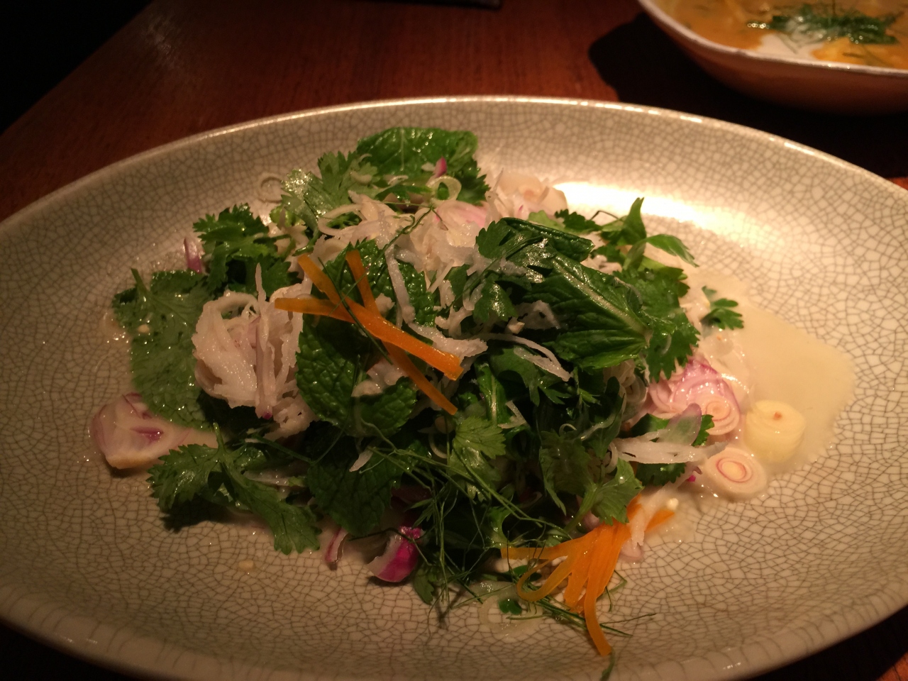 世界の美味しいレストランランキングで上位に入っていたためタイに行ったらぜひ行きたいと思ってた店にやっと行けました~!場所はメトロポリタンホテルの1階です。ワンピースをきて ヒールの靴は持って行きました。お客さんは欧米の方が多かったです。メニューには写真が載っていないため、店員さんにオススメを聞いて単品で注文しました、今まで素敵なタイ料理店はいくつか行きましたが、出される料理が本当に見たことないような見た目にまず驚きました!美味しいし、辛いです!もはや説明出来ないレベルです。ぜひ行ってみて下さい! 注意事項は、とにかく辛い!わたしは辛いのが平気な方ですが辛いのに食べたくてイライラしました笑。あとは香草たっぷりです!抜けないレベルなのでパクチー嫌いな人は無理だと思います。