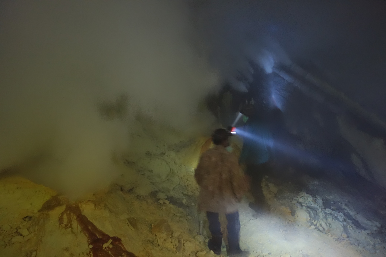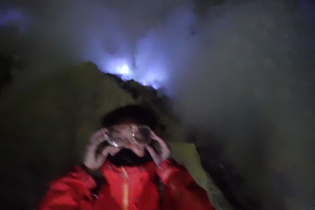 Blue Fire !感動でした!真っ暗な中で青い炎がゆらゆらと揺れている景色は決して日本では見ることができないと思います。また、もくもくとしたガスの中で簡単なマスクをつけ硫黄を掘り、重い硫黄を担いで1時間かけて山を降りていく鉱山労働者の人はすごいところあらためて感心しました。