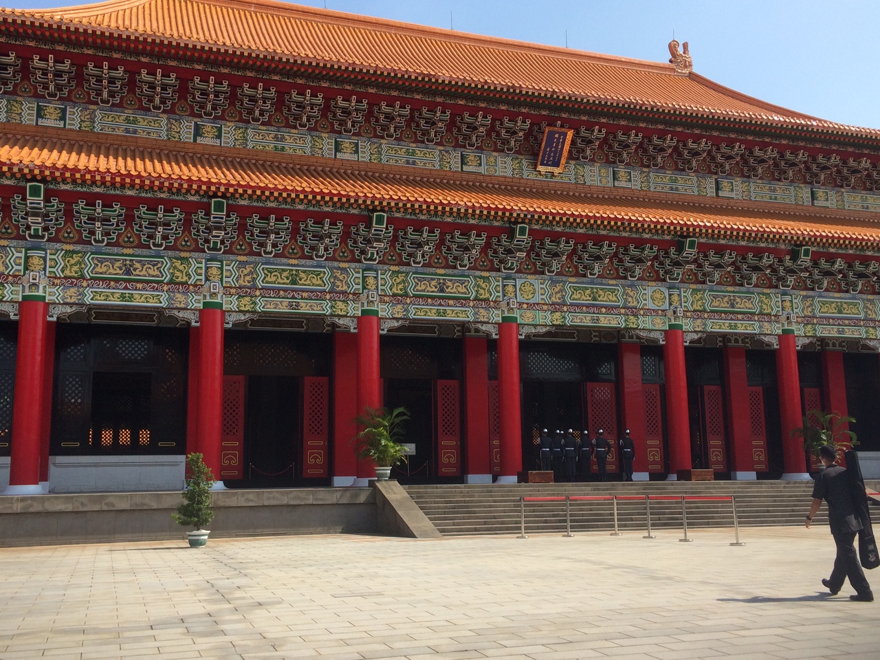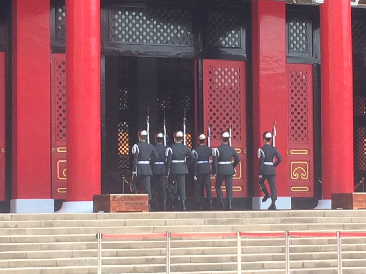 ピッタリの息のあった衛兵交代式で有名な「忠烈祠」は、そもそも辛亥革命や日中戦争で犠牲になった33万人の御霊を祀る施設です。中正紀念堂の左右に建つ建物は台湾が誇る文化施設「国家戯劇院」で演劇、コンサート、ミュージカル、オペラ、バレエ等が上演されています。2007年に「中正紀念堂」から「台湾民主紀念館」へと名称変更しましたが、その後再び、元の「中正紀念堂」の名に戻され、現在に至っております。国歌が流れたら、帽子をかぶっている人は脱ぐのがルールになっています。