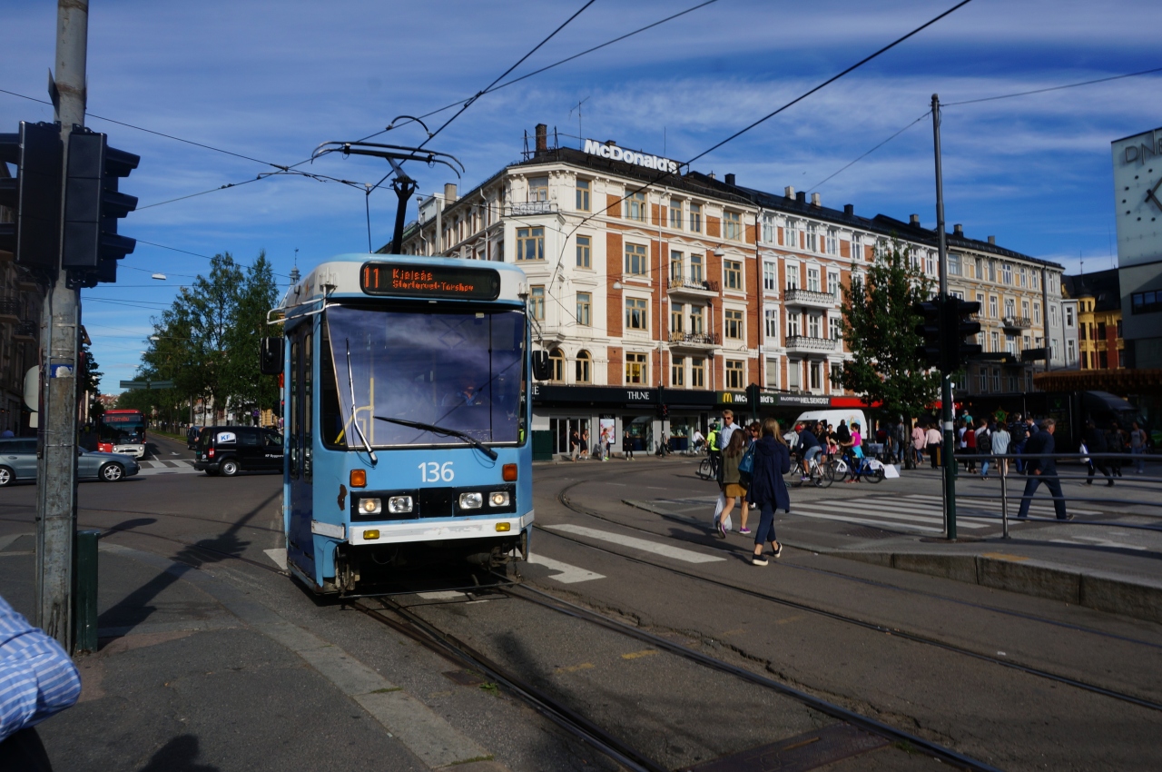 観光案内所で、オスロカードを購入して、路線図と時刻表をもらいました。車内から外の景色が見えるので快適です。ただ、日本のように車内アナウンスがないので降りる駅に注意を払っていないといけません。ボタンを押すと止まってくれます。