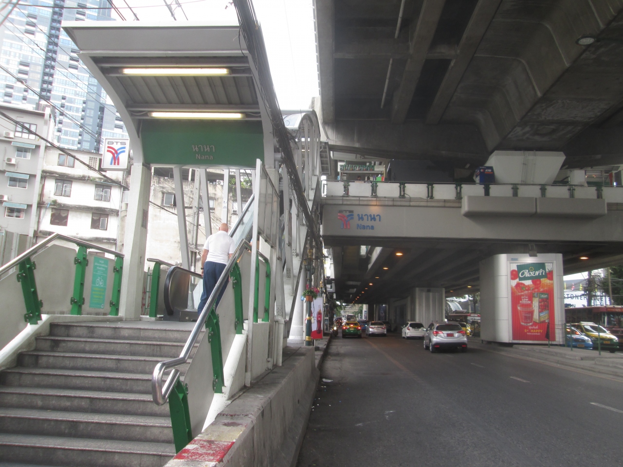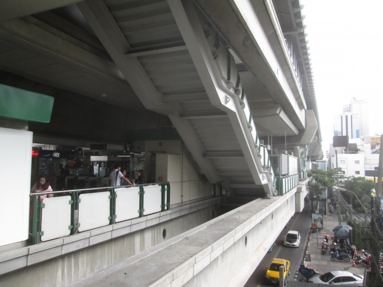 地上にある高架の駅です。地上から駅ホームまではエスカレーターか階段を利用しますが、階段は転落防止用の手すりの位置が低い部分があります。タイ人は抵抗なく利用していますが、階段を上り下りする場合、階段の内側を歩くなど注意が必要です。