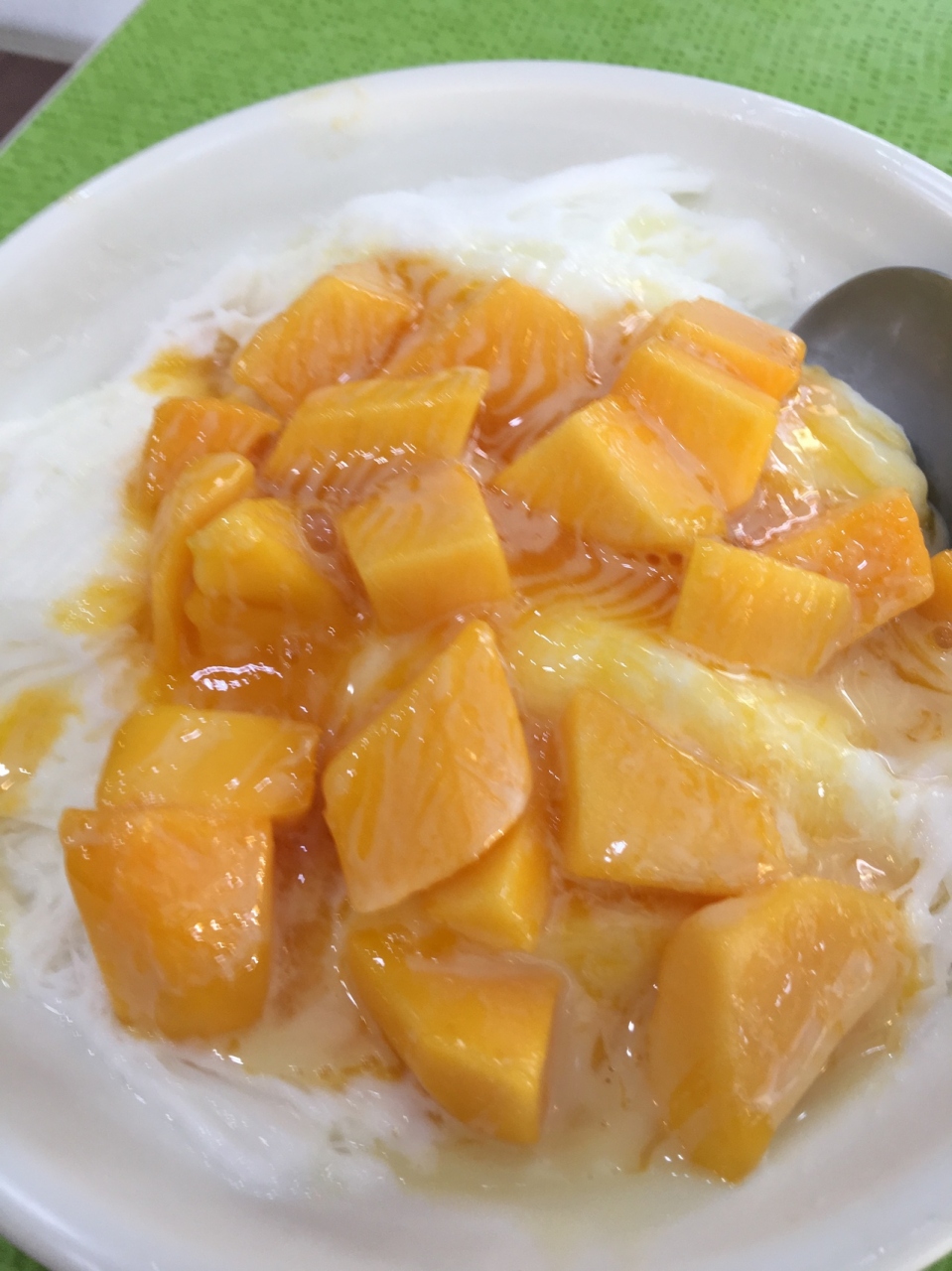マンゴー氷を食べましたがミルク氷を削ったうえに練乳はがかかっているため甘いですが、
