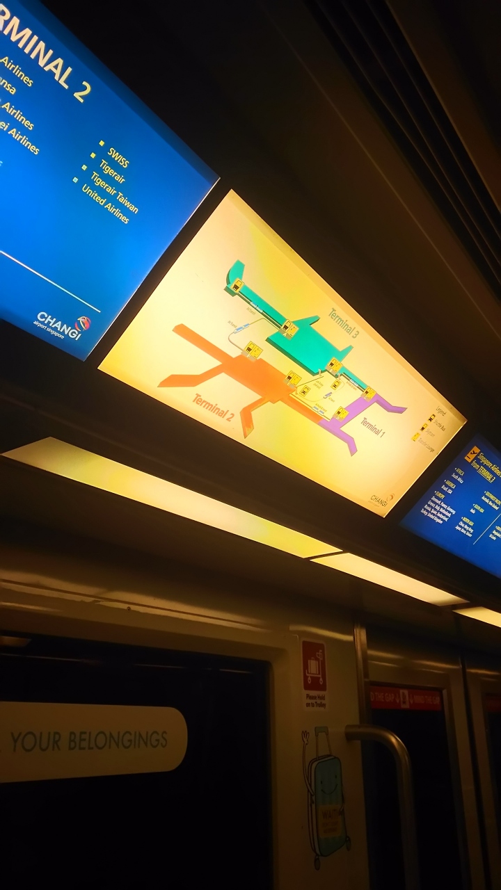 チャンギ空港は非常に広いですので、ターミナル間の移動には必須です