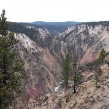 展望台からは遠くにロウアー滝が見えてイエローストーンリバーと渓谷が一望できてダイナミックな印象を持てた景色でした。