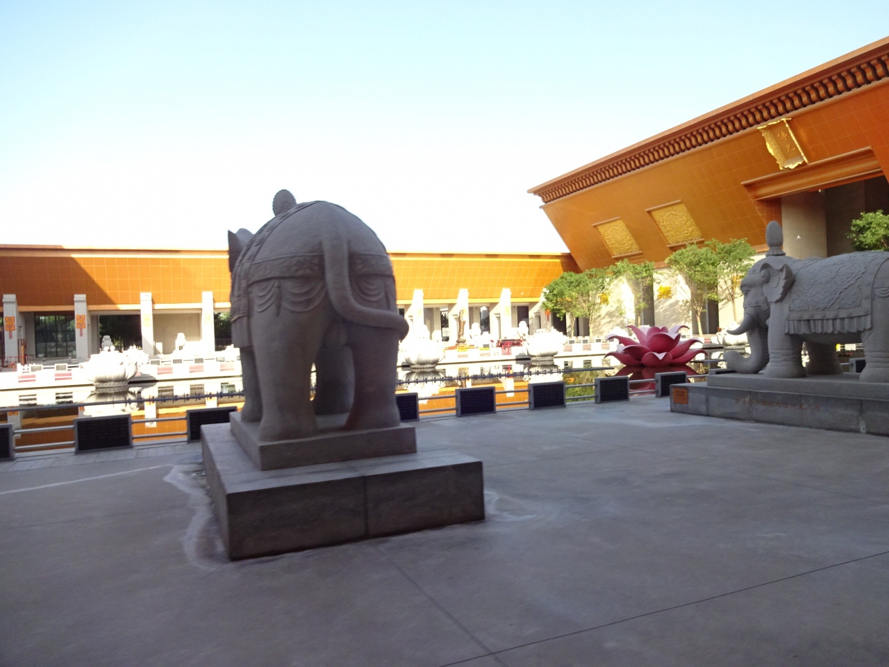 入口の建物は大きな金ぴかの建物、そしてそこから電動カートが出ていて(有料)合十舎利塔(これも金ぴか)方向へ、その間金ぴかの仏像なんかが並んでいて、まさにもうけてまんな~~っていう感じの寺院です。