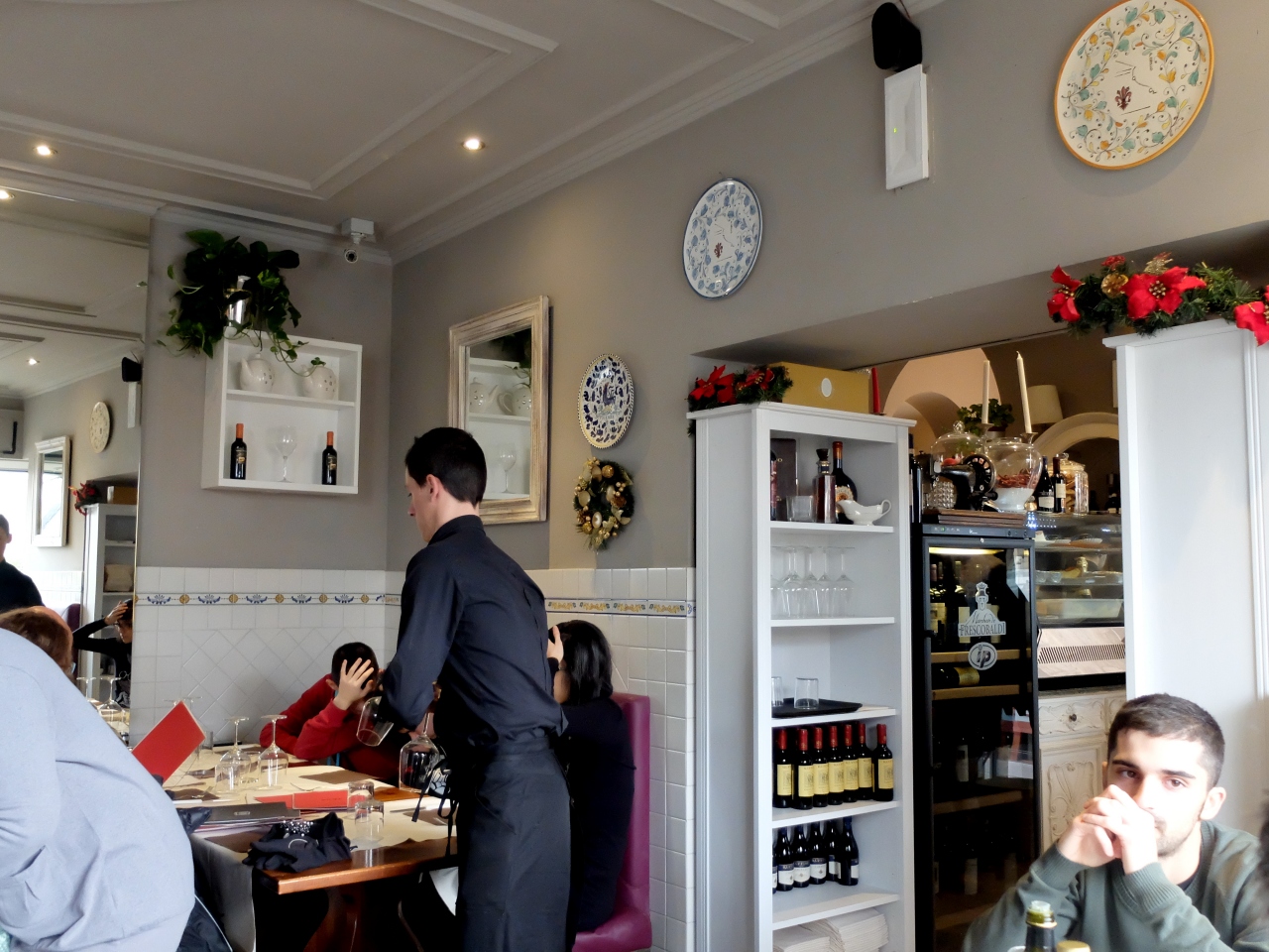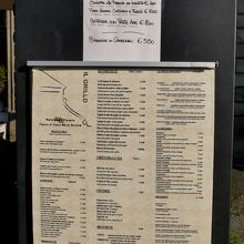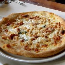 Santa Maria Novella広場のIl Grilloという店へ.ランチ10-14ユーロと手ごろ.モッツアレラ,ソーセージ,白豆のピザ10ユーロ