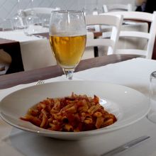 ベーコンとオニオンとトマトソースのパスタ10ユーロ