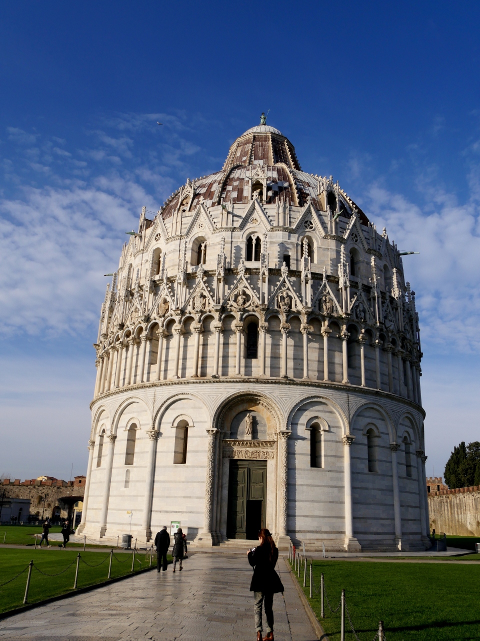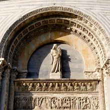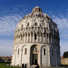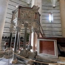 美しい洗礼堂 12世紀半ばに建設が始まり,14世紀に完成 屋根は片面だけ鉛板葺き 予算不足だったとか.中の音響がすごい.時折係りの方がカウンターテノールの声で聖歌を歌ってくれた.すると音響の素晴らしさがわかる.たぶんしばしば行っていると思うので,少し待って聞くといいと思う.